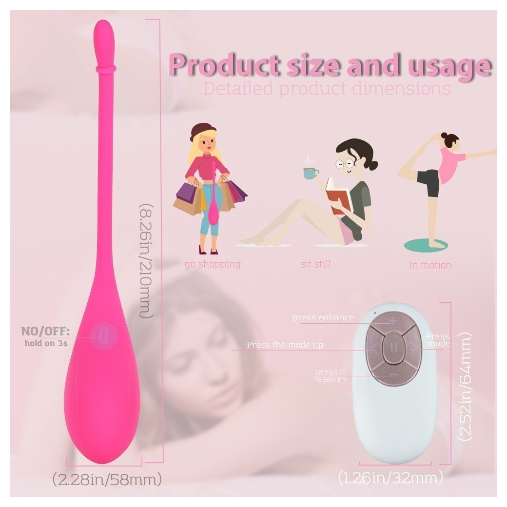 Ярко-розовый гладкий вагинальный виброшарик Ruby. 9 режимов вибрации, функция изменения мощности вибрации, дистанционный пульт.