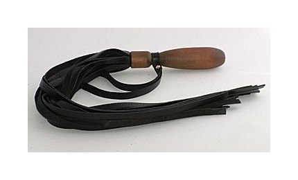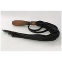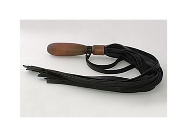 Стильная плетка с кожаными шнурами и удобной деревянной ручкой. На рукояти есть петля. Длина ручки - 20 см.