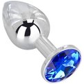 Стальная анальная пробка с синим кристаллом - 7 см
