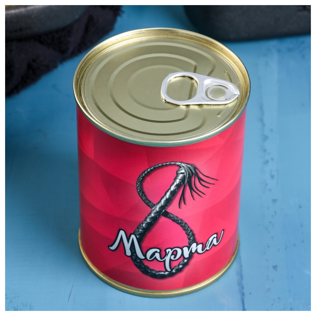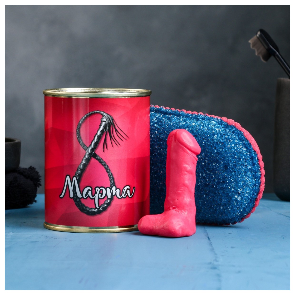 Набор в консервной банке «8 марта»: мыло-фаллос и мочалка