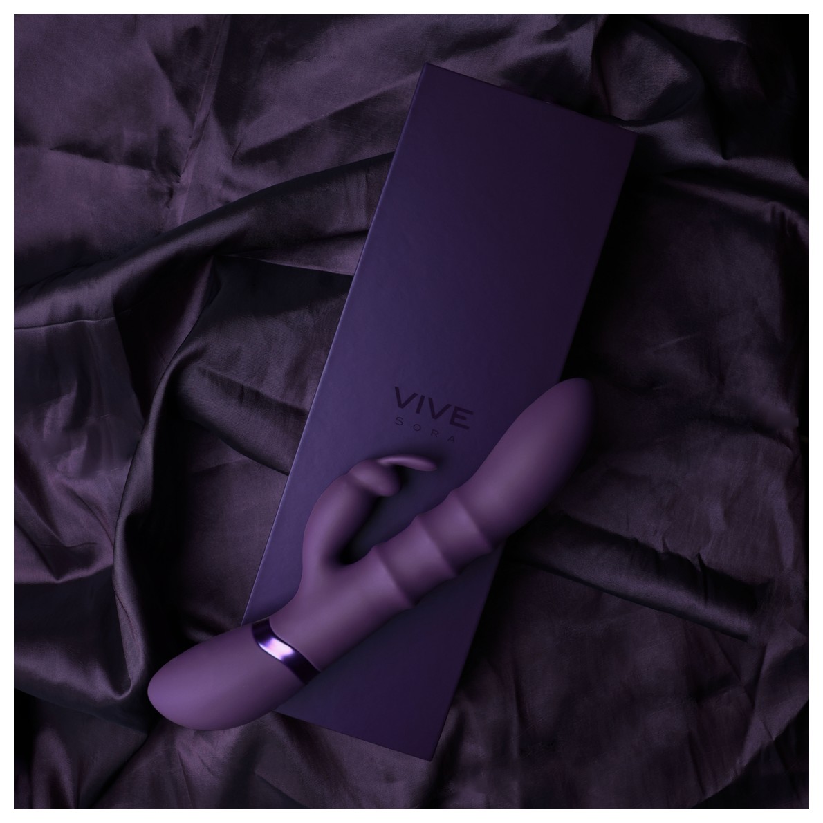 Фиолетовый вибромассажер-кролик с 3 стимулирующими кольцами Sora - 24,2 см
