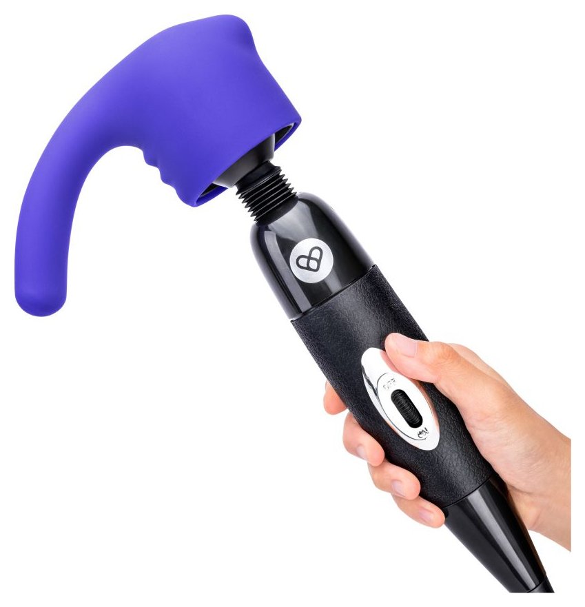 Гладкая силиконовая насадка из мягкого силикона фиолетового цвета, предназначенная для использования вместе с массажерами ванд. Внутренний диаметр насадки предназначен для вандов с головкой диаметром около 5,5 см. Загнутый кончик насадки позволяет легко нащупать G-точку и сочетая с вибрациями в массажере ванд, подходящего для насадки данного диаметра, вы можете получать истинное интимное удовольствие. Длина вагинального отростка - 9 см, а диаметр - 2,2 см.
