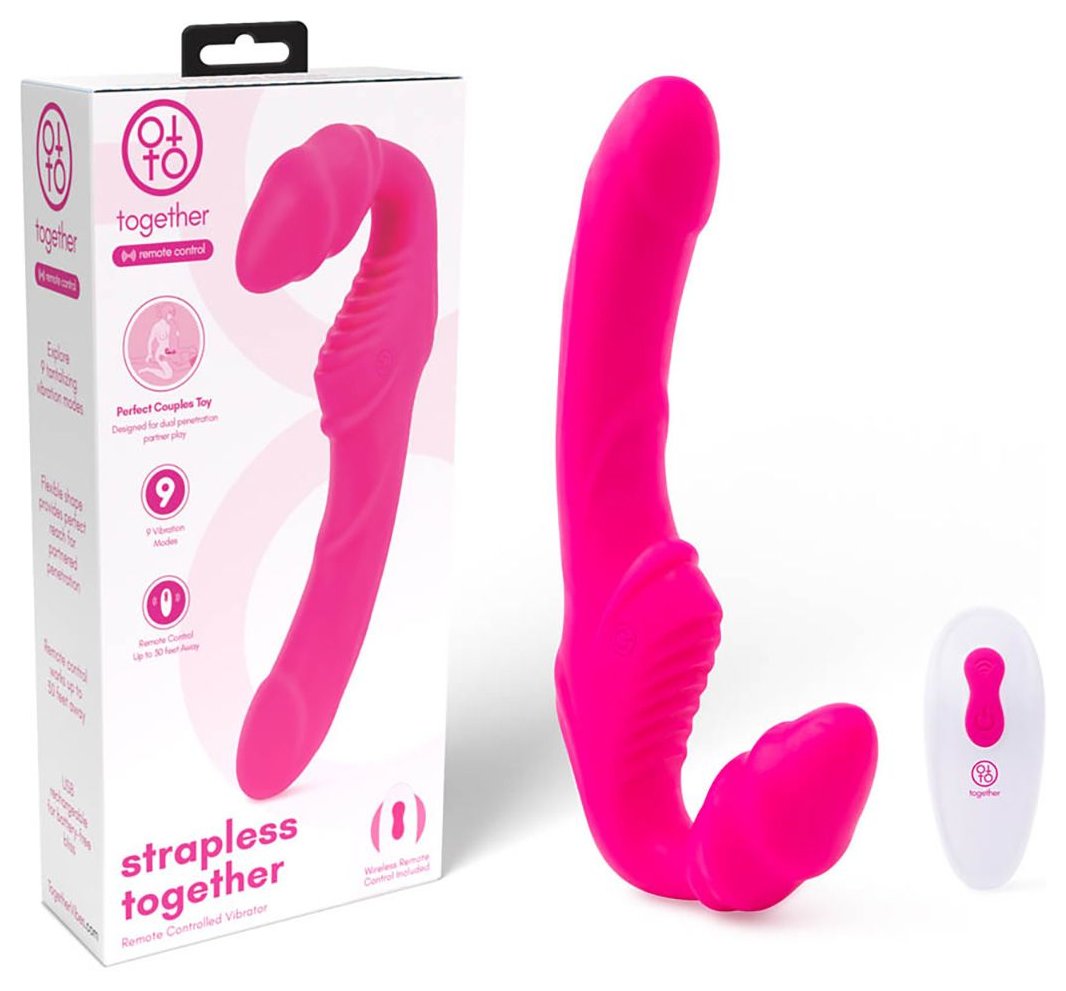 Погрузитесь глубже в желания друг друга с помощью вибратора-страпона с дистанционным управлением без ремешков Together. Этот двойной проникающий вибратор, идеально подходящий для игр в паре. Изогнутая конструкция Strapless Together обеспечивает идеальную досягаемость для партнерского проникновения, одновременно стимулируя самые важные точки у вас и вашего партнера с помощью специально разработанного изгиба, облегчающего зрительное соединение и общение лицом к лицу. Благодаря 9 регулируемым режимам вибрации на выбор и гибкому фаллосу вы можете управлять своей вибрацией так, как вам нравится, и устанавливать новые, более глубокие связи. Вибромассажер с дистанционным управлением Strapless Together изготовлен из шелковистого, мягкого, безопасного для тела силикона и имеет гибкий стержень, его очень легко переключать между режимами, выбирая подходящий именно вам обоим. Вы можете использовать его в различных положениях, чтобы нацеливаться на точку G или точку P партнера на принимающей стороне, в то время как женщина наслаждается внутренней стимуляцией с помощью меньшего ребристого небольшого вагинального отростка. Благодаря бесшумной вибрации и девяти режимам мощности на выбор он идеально подходит для любого уровня опыта. Массажер водонепроницаемый. Используйте лубриканты на водной основе, чтобы его использование стало еще более приятным. Рабочая длина - 12 см. Длина вагинальной пробки - 7 см, диаметр - 3,6 см.