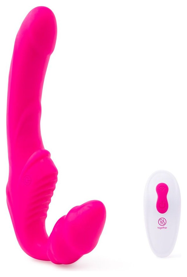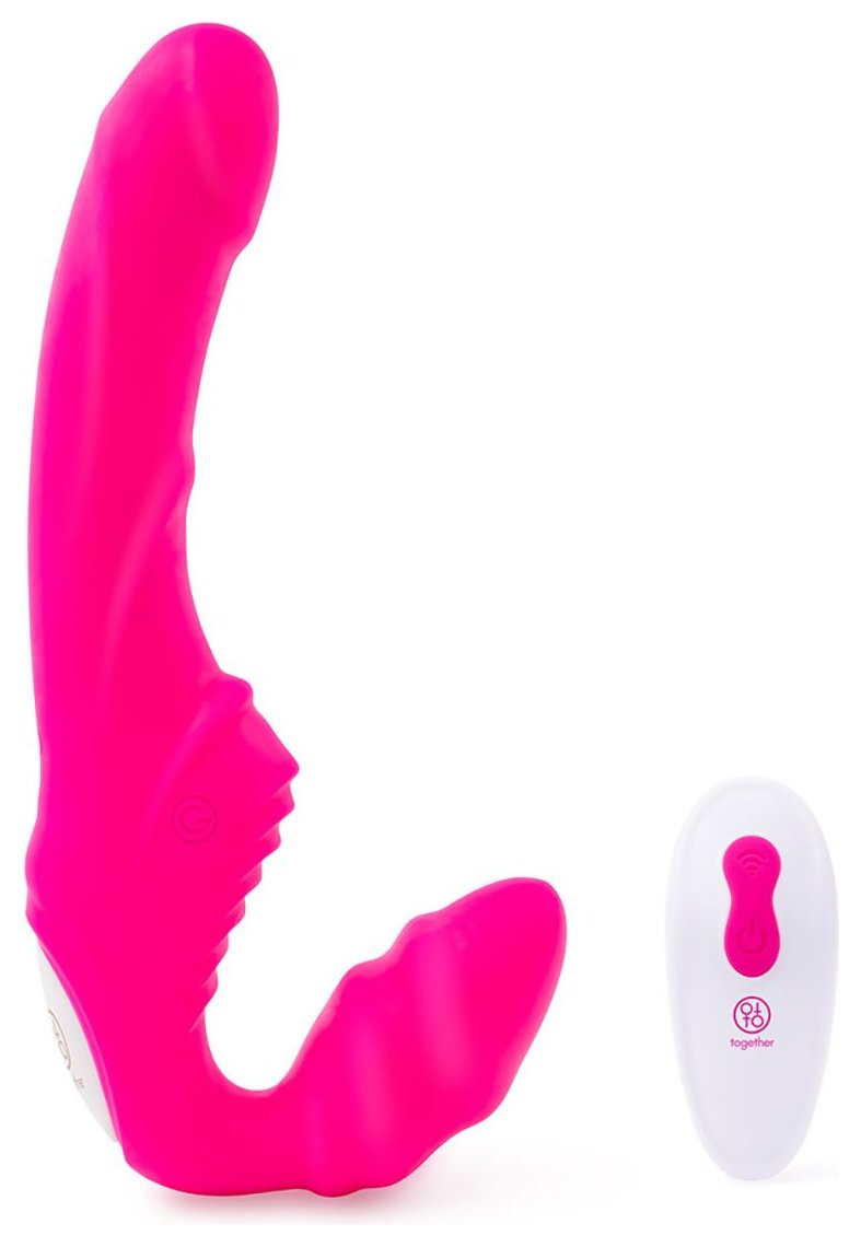Розовый безремневой страпон на радиоуправлении Strapless Together - 22 см