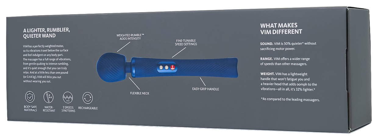 Vim от Fun Factory – это не просто вибромассажер, это погружение в элегантный мир стимуляций и удовольствия. Отличаясь от обычных вандов, Vim сочетает в себе изысканный дизайн с мощными возможностями, гарантируя неповторимые ощущения от деликатных ласк до интенсивных вибраций. Самая сильная на сегодняшний день игрушка премиум-класса Fun Factory массирует перенапряженные, уставшие мышцы и самые чувствительные части тела, такие как половые губы, клитор или промежность, с точно регулируемым диапазоном различной силы вибрации. Стимуляцию можно почувствовать даже через одежду. Vim не ограничивает ваши возможности — используйте его в различных сценариях как в соло-игре, так и в паре С его классическим дизайном wand, удобной ручкой и умеренно гибкой силиконовой головкой Vim обеспечивает максимальный комфорт во время использования. Широкая площадь поверхности и восхитительные текстуры по всей поверхности игрушки создают дополнительные моменты сладких переживаний. Уникальный утяжеленный двигатель создает глубокую вибрацию на любой скорости, оставаясь при этом на 50% тише, чем многие похожие игрушки. Вибрация фокусируется в головке массажера, обеспечивая точное воздействие. С легким весом Vim легко удерживать, даже в течение продолжительного времени. Благодаря точно настраиваемой силе вибрации VIM адаптируется к вашим индивидуальным предпочтениям, и вы можете переключаться между 5 скоростями и 3 программами, просто нажимая кнопку или -. Если зажать кнопку или - на одной из 5 скоростей, уровень вибрации меняется в минимальном диапазоне и становится чуть интенсивнее или слабее, как вам нужно Fun Factory VIM поставляется с тремя уникальными программами: Deep Orgasm: целью является путешествие: программа «глубокий оргазм» начинается мягко с легких вибраций и постепенно увеличивается до максимальной мощности. Результатом является особенно глубокая кульминация благодаря постоянному увеличению интенсивности и возбуждения - в вашем темпе. Intense Orgasm: желание от нуля до 100: быстрая и неудержимая программа интенсивный оргазм мгновенно захватит вас и вызовет толчок, который вы не скоро забудете. Короче говоря: испытайте лучший быстрый секс в своей жизни, включая максимальное удовлетворение. Edging: готовы к приключениям? Во время тренировки VIM неоднократно доводит вас до грани максимально возможного возбуждения только для того, чтобы внезапно и неожиданно снова и снова переключаться на «остывание». Горько-сладкий путь к сверхинтенсивному или даже многократному оргазму.