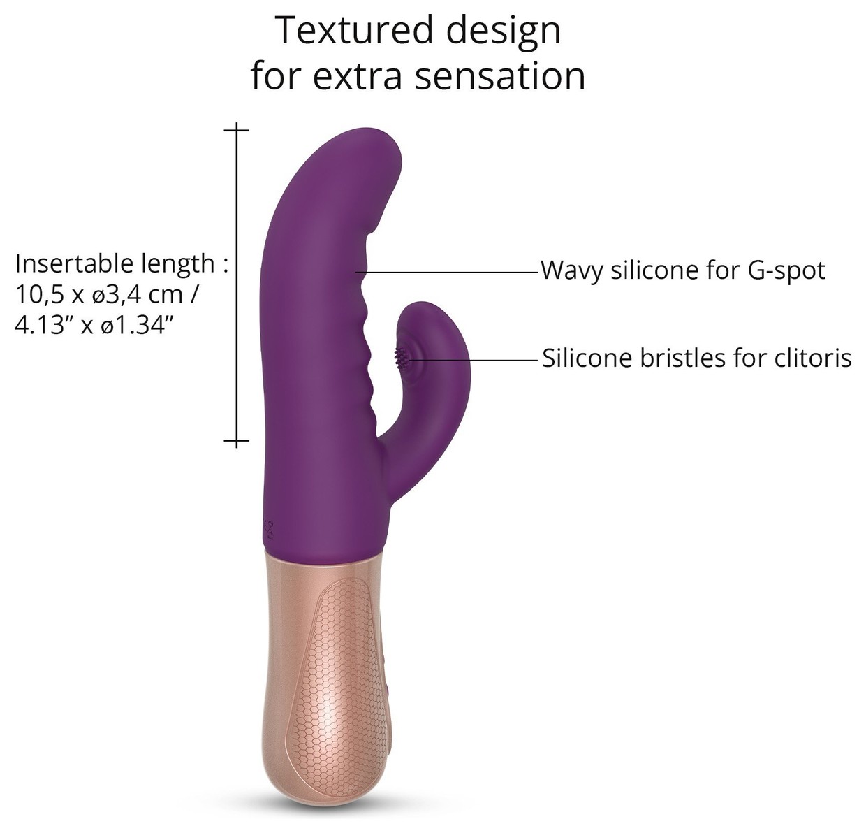 Sassy Bunny удовлетворит самых опытных. Этот высокопроизводительный вибратор оснащен двумя очень мощными двигателями для еще более интенсивной двойной стимуляции. Двойная технология: 7 режимов движения вперед-назад, имитирующего половой акт, яркая стимуляция точки G. Технология постукивания (6 режимов) – яркая стимуляция головки клитора. Дизайн и текстуры были тщательно проработаны, чтобы создать анатомический продукт! Рабочая длина - 10,5 см. Время зарядки - 2 часа. Время работы - 45 мин.
