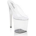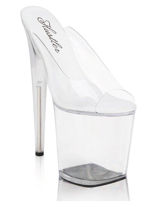 Умопомрачительные сабо на прозрачной высочайшей платформе, которые созданы для будоражащих танцев и привлечения всеобщего внимания к их обладательнице. Шпилька имеет металлический стержень. Высота платформы - 10 см. Высота каблука - 21 см. В комплекте запасная пара набоек.