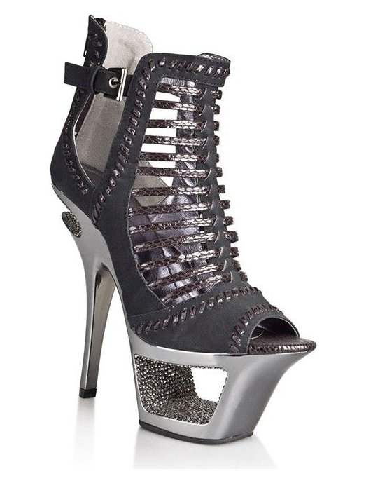 Шикарные эксклюзивные дизайнерские туфли Hustler - матовая искусственная замша с глянцевыми деталями из полосок под змеиную кожу. Зеркальная подошва, инкрустированная переливающимися стразами внутри платформы и в вырезе каблука. Высота платформы - 6 см, высота каблука - 16 см.