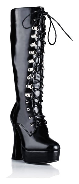 Сапоги из искусственной кожи с глянцевым покрытием. Утепленная модель со шнуровкой, которая поможет подогнать сапог точно по ноге. Сбоку длинная молния. Высота платформы - 4 см, устойчивый каблук высотой 12,5 см.