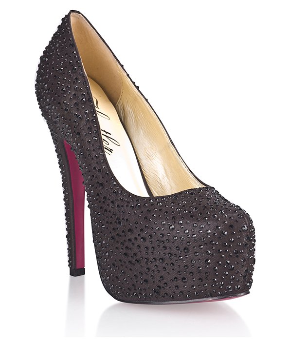 Дресс-код на мероприятие черный? Но как выделиться среди всей черной массы? Или ты просто поклонница классической обуви, но иногда хочется чего-то особенного? Идеальный выбор - туфли Black Diamond! Красивые туфли на устойчивой шпильке украшены вручную черными кристаллами. Тканевая основа из искусственной замши. Высота каблука - 14 см, высота потайной платформы - 5 см. В комплекте запасная пара набоек и несколько кристаллов.
