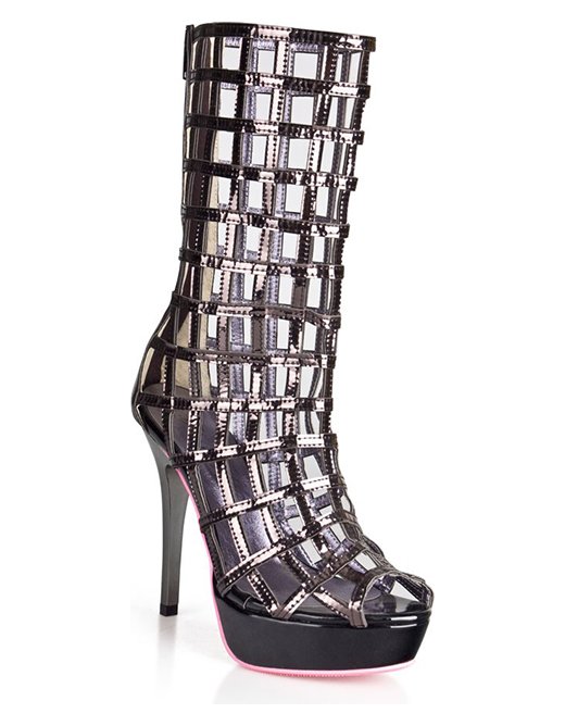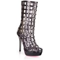 Высокие сапожки-босоножки - модный тренд от западных дизайнеров! Туфли из искусственной кожи длиной до середины голени. Сзади застегиваются на молнию. Сапожки с контрастной неоново-розовой подошвой. Эти туфли хорошо сочетать не только с платьями и шортами, но и с лосинами и туниками! Высота платформы - 3,5 см, высота каблука - 13,5 см.