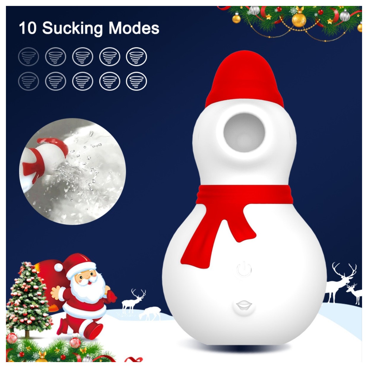 Вакуум-волновой стимулятор клитора в форме снеговика с красными аксессуарами