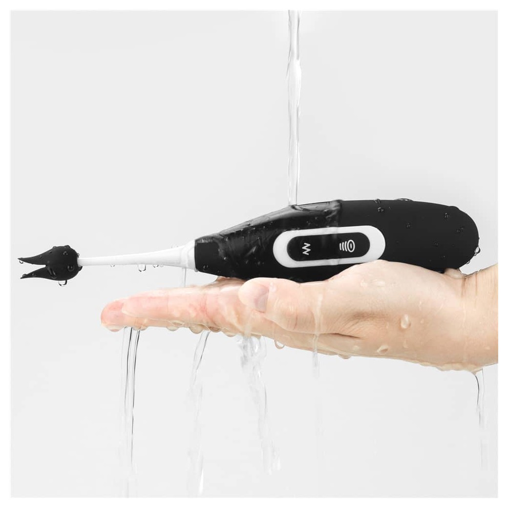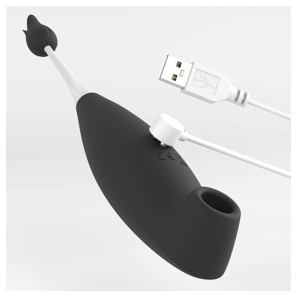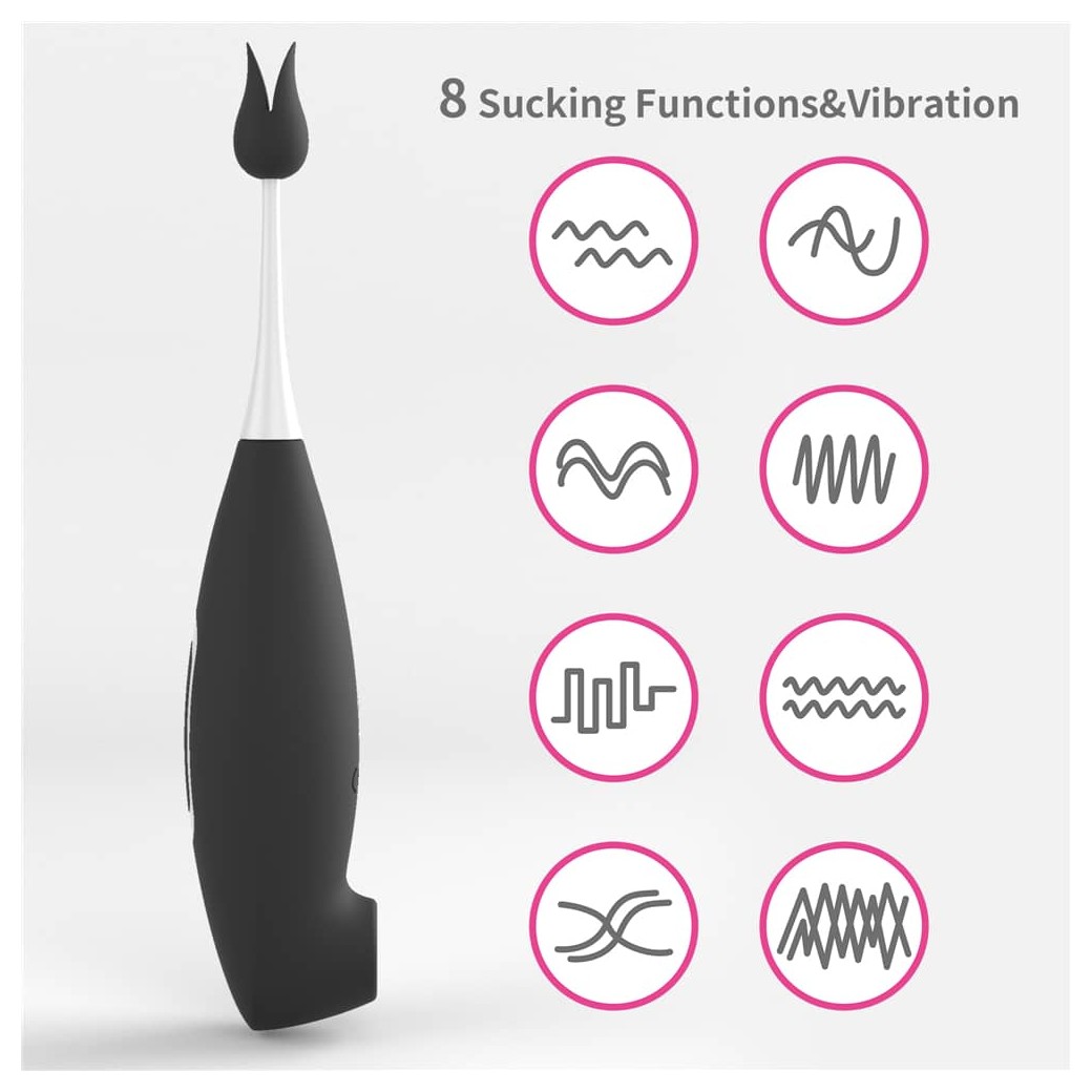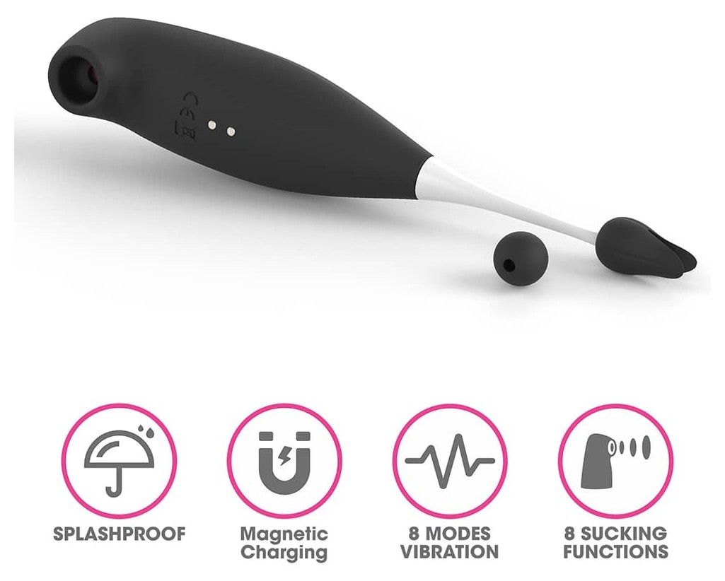 Клиторальный вибратор IJOY Clit Pro. Девайс имеет 2 части - вакуумный стимулятор клитора с одной стороны и вибростимулятор с другой стороны. Имеет 8 типов вибраций и режимов сосания. Устойчив от брызг воды, но погружать в воду его нельзя. 2 силиконовые насадки