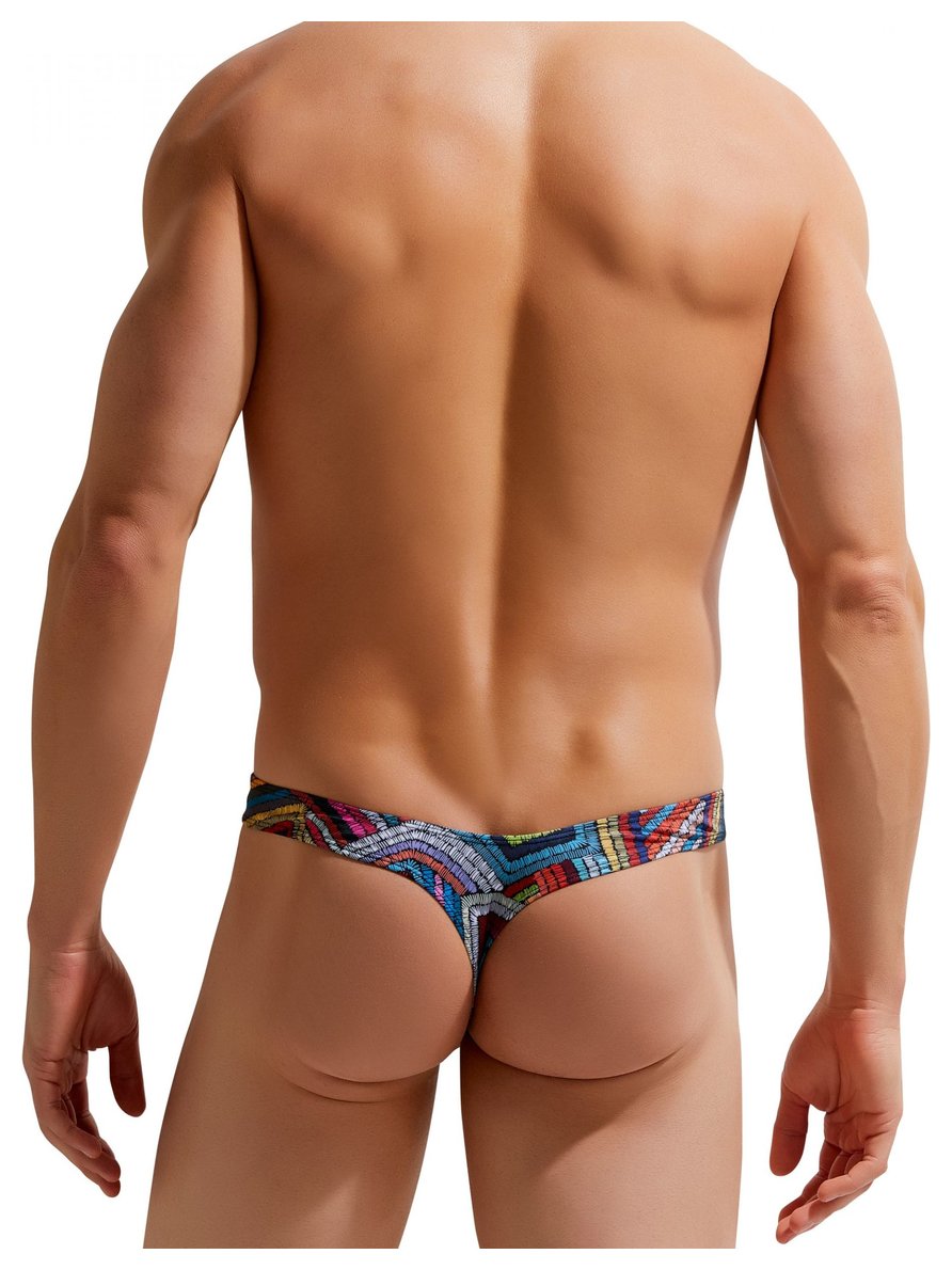 Мужские трусы-тонги с разноцветным геометрическим принтом.