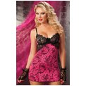 Обольстительная сорочка с завораживающим орнаментом. Чашечки выполнены из цветочного кружева, а вырез украшает декоративный бантик. Сорочка на косточках красиво описывает вашу фигуру и эротично открывает спину. В комплекте: сорочка, трусики-стринги.