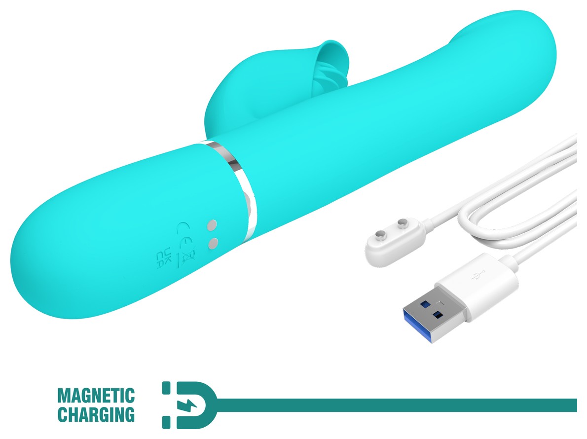 Вибратор-кролик Falin с вращением бусин предназначен для одновременной внутренней и внешней стимуляции. В стволе расположены движущиеся бусины, 4 режима вращения. Ствол и отросток вибрируют в 7 режимах. Рабочая длина - 12 см.
