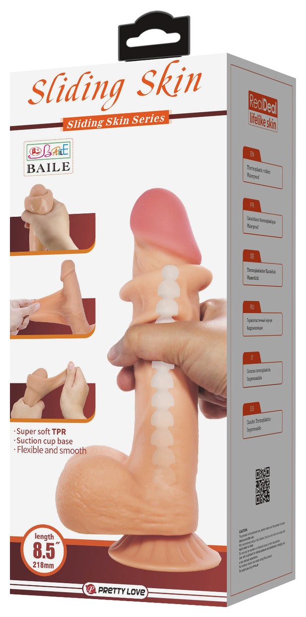 Телесный фаллоимитатор с эффектом скользящей кожи - 21,8 см