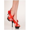 Туфли на высоком каблучке, верх-атласный,стелька кожаная. Сбоку аппликация в виде цветка. Длина каблука 10 см. Высота платформы 4 см. Размер 37,38,39