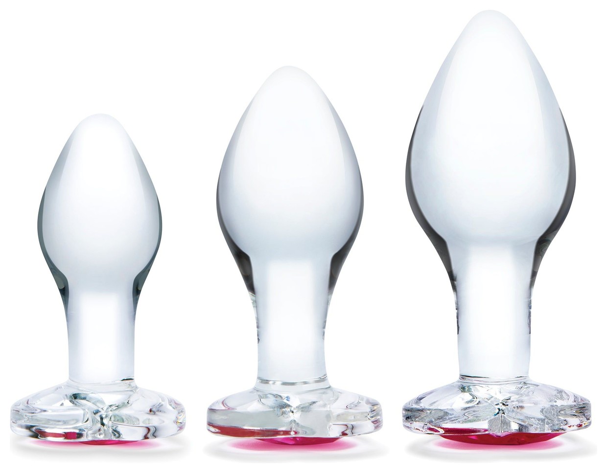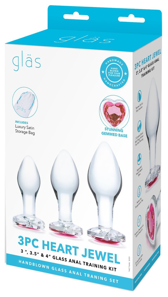Набор из 3 стеклянных анальных пробок Heart Jewel Plug Set