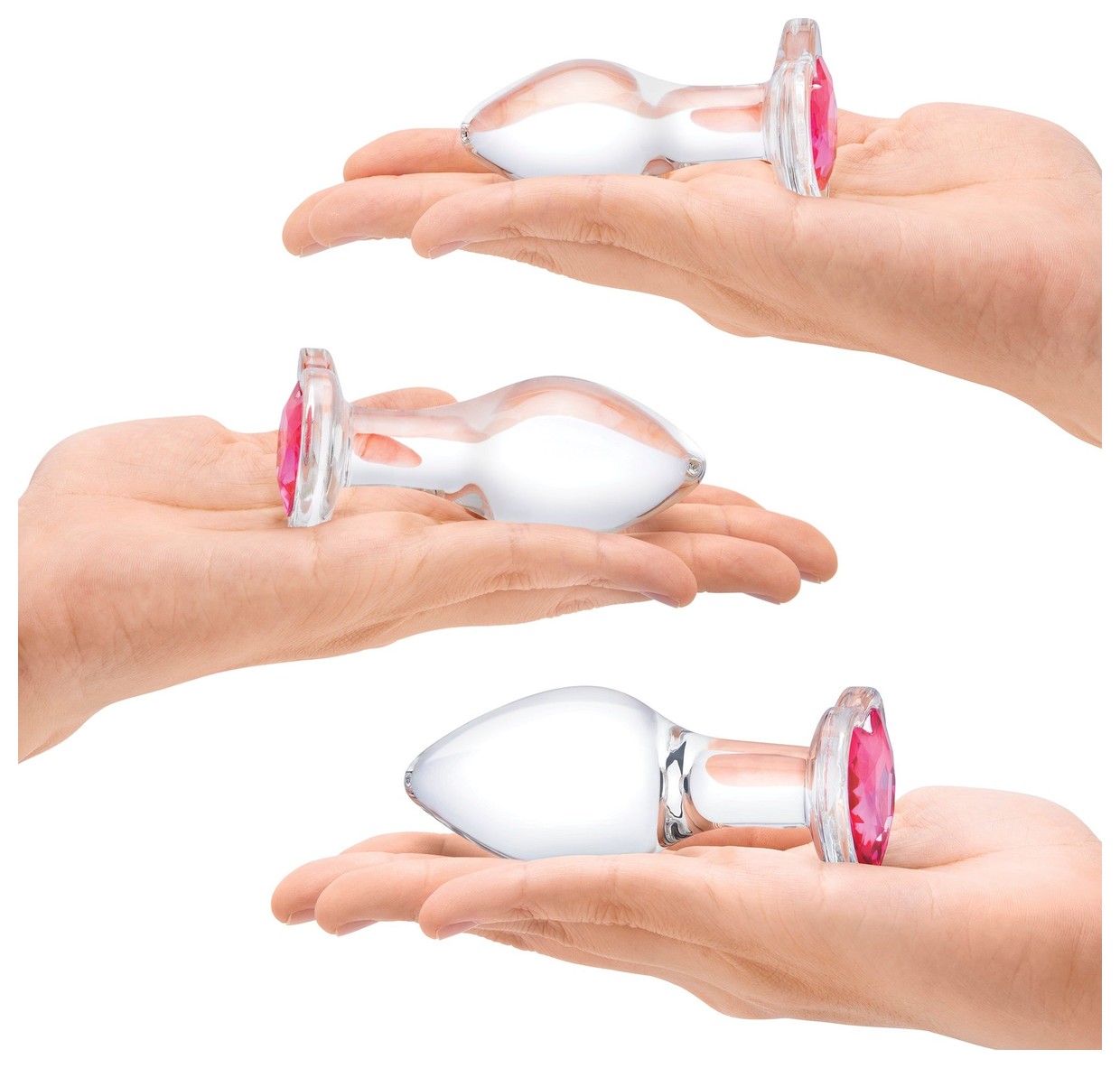 Этот анальный тренировочный набор умело проведет вас через процесс тренировки вашего тела для более приятного анального опыта. Эти три пробки изготовлены из гладкого прочного стекла и имеют градуированные размеры, чтобы облегчить вам этот тип стимуляции. Каждая из них имеет сужающийся кончик, облегчающий введение, и плоское расширяющееся основание, которое удобно удерживает плаг на месте. Вы можете начать с самого малого размера, используя постепенно все больший размер. Красное сердце-кристалл в основании плага добавляет элегантности каждому стимулятору, но при этом набор достаточно компактен для путешествий или хранения, тем более, что в комплекте вы найдете сатиновый белый мешочек с голубым логотипом. Длина большой пробки - 8,3 см, диаметр - 3,9 см. Длина средней пробки - 7,5 см, диаметр - 3,4 см. Длина малой пробки - 6,5 см, диаметр - 2,9 см.