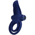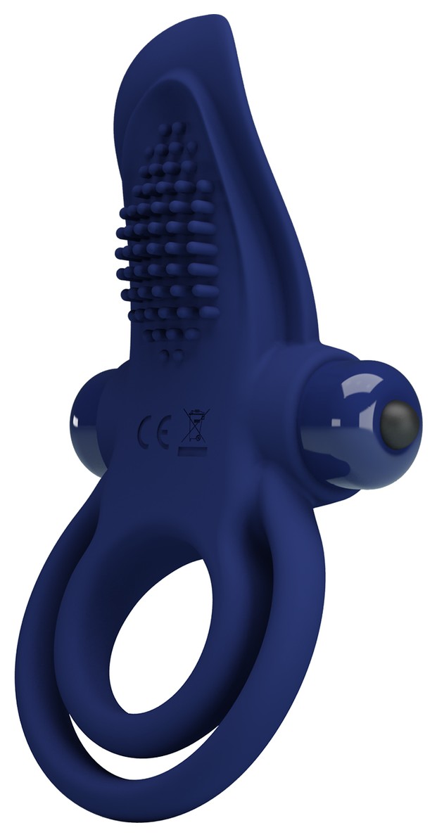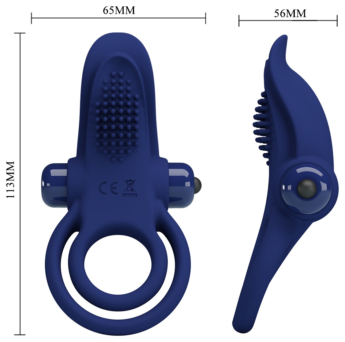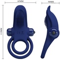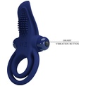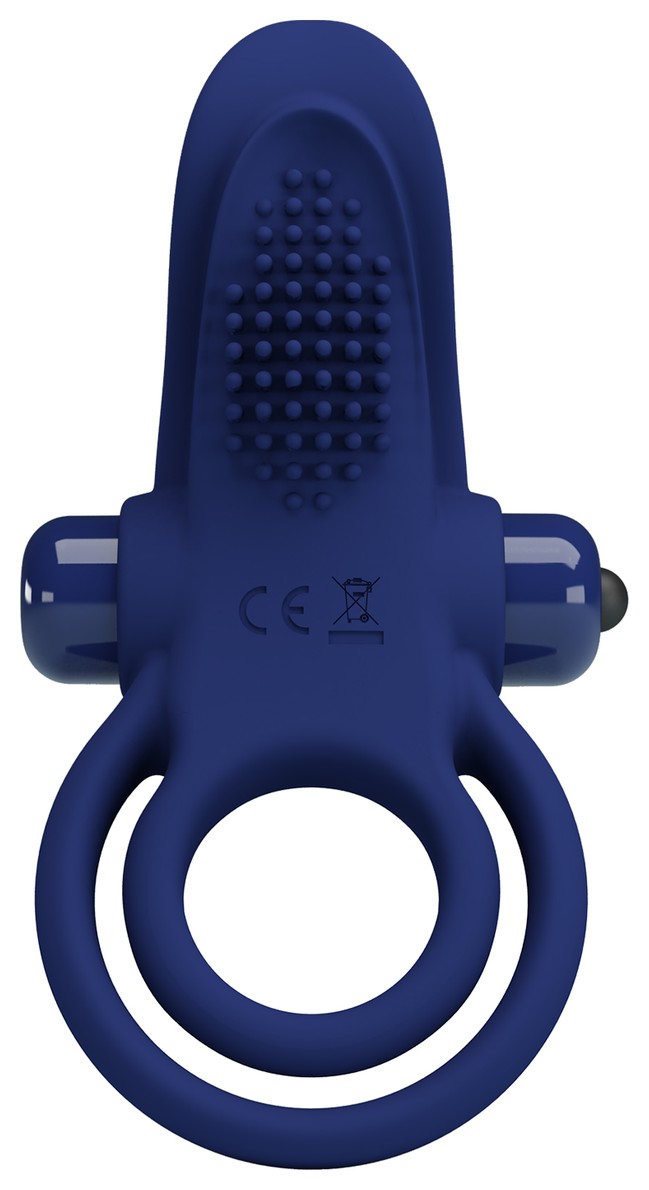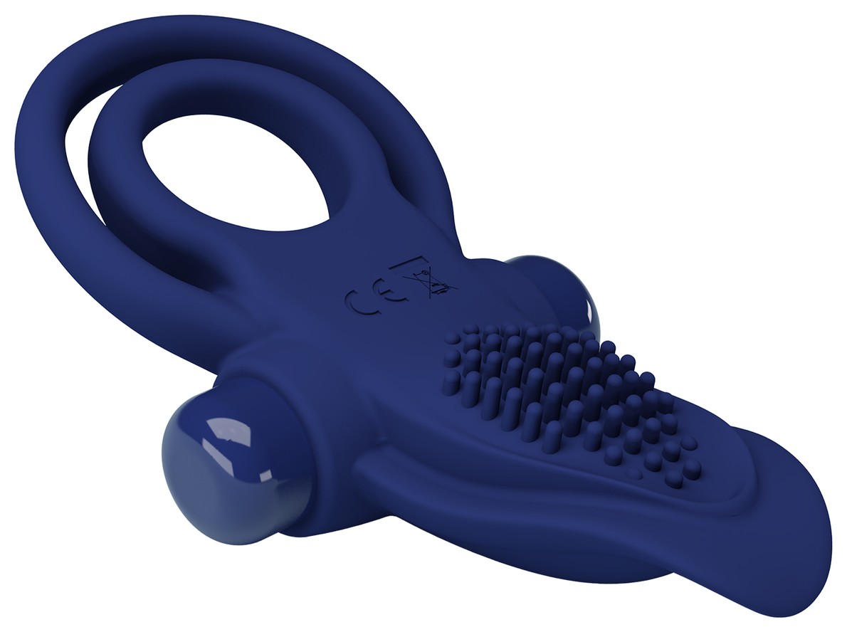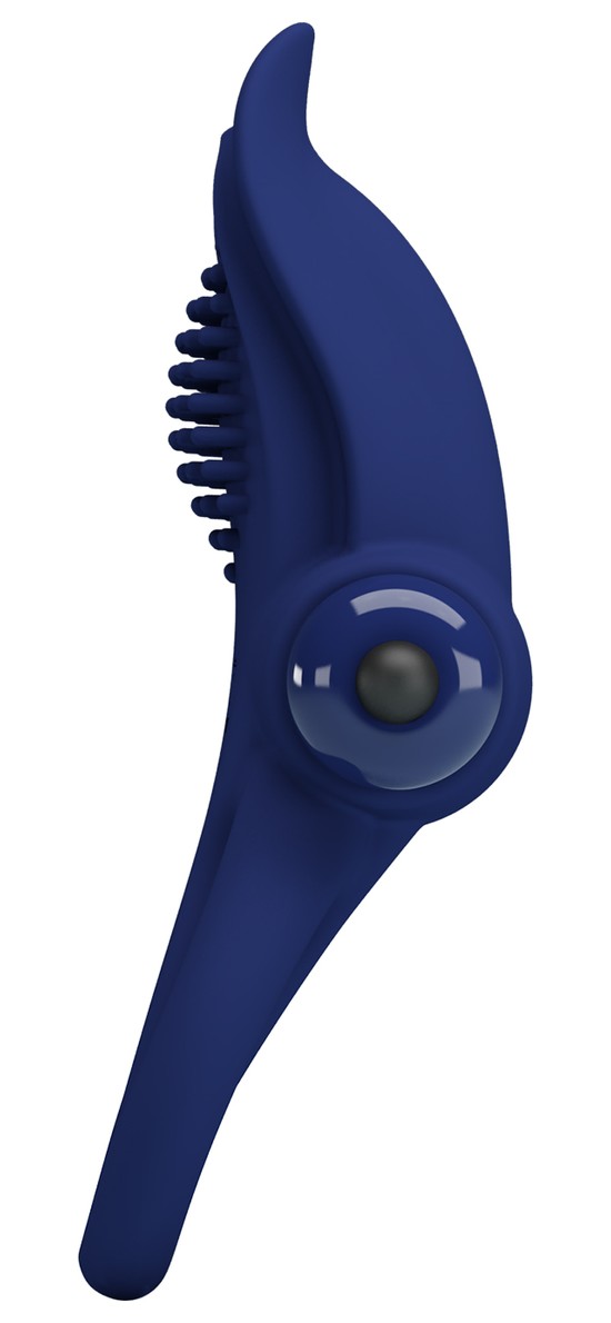 Синее силиконовое эрекционное кольцо с вибрацией и подхватом мошонки