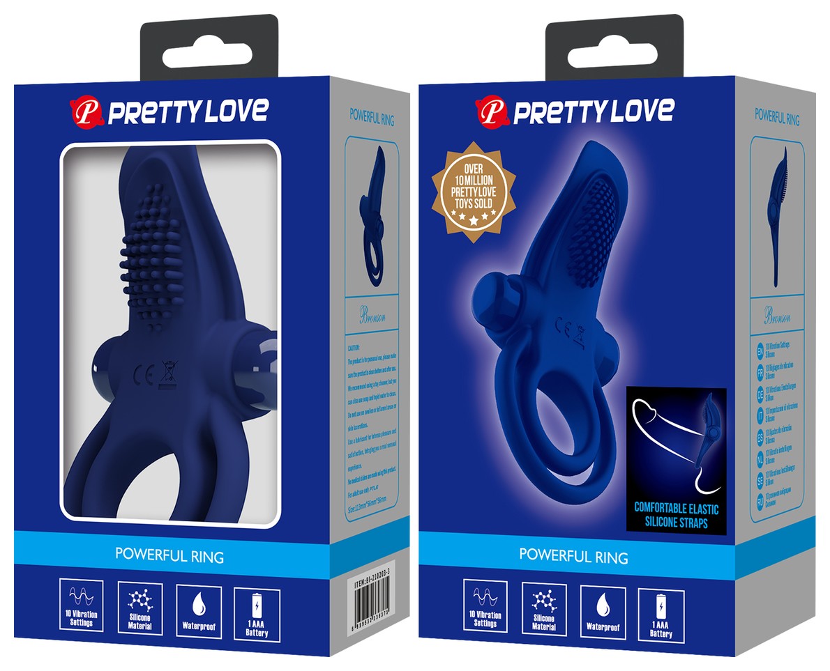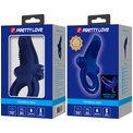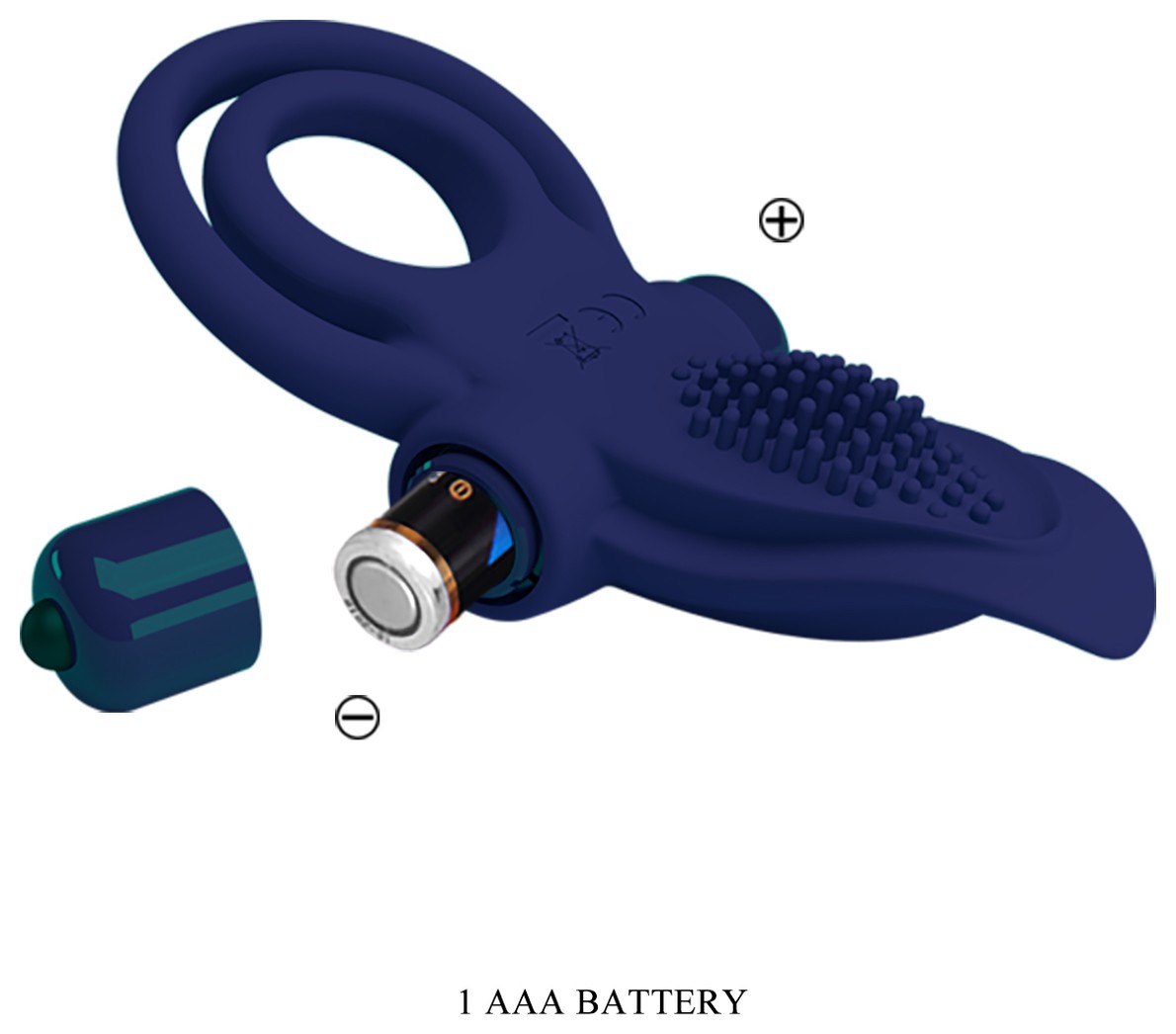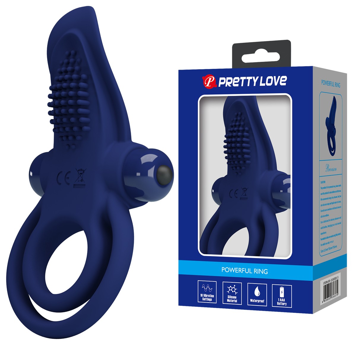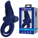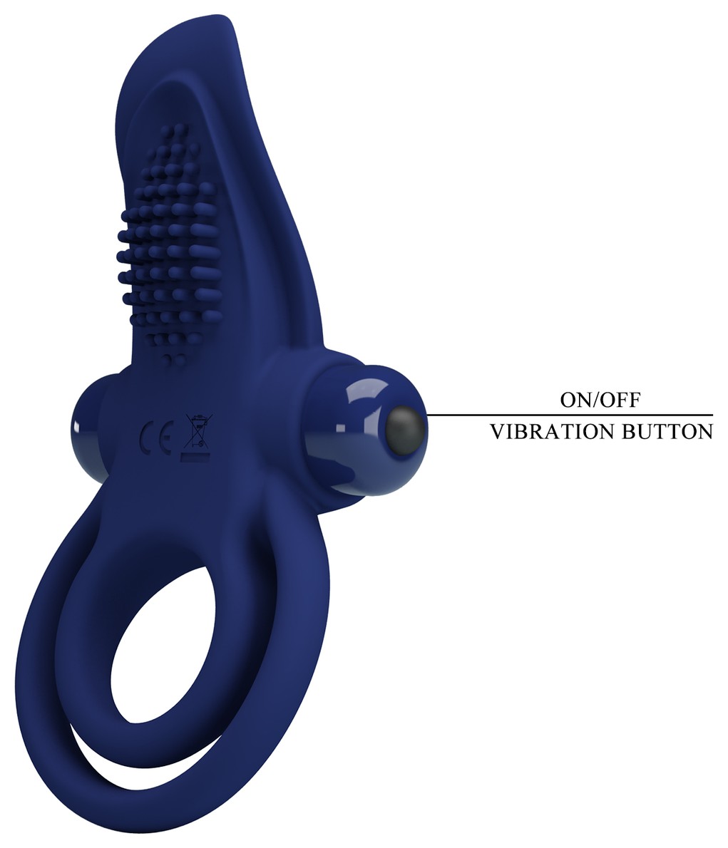 Синее силиконовое эрекционное кольцо с вибрацией и подхватом мошонки