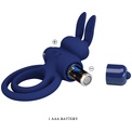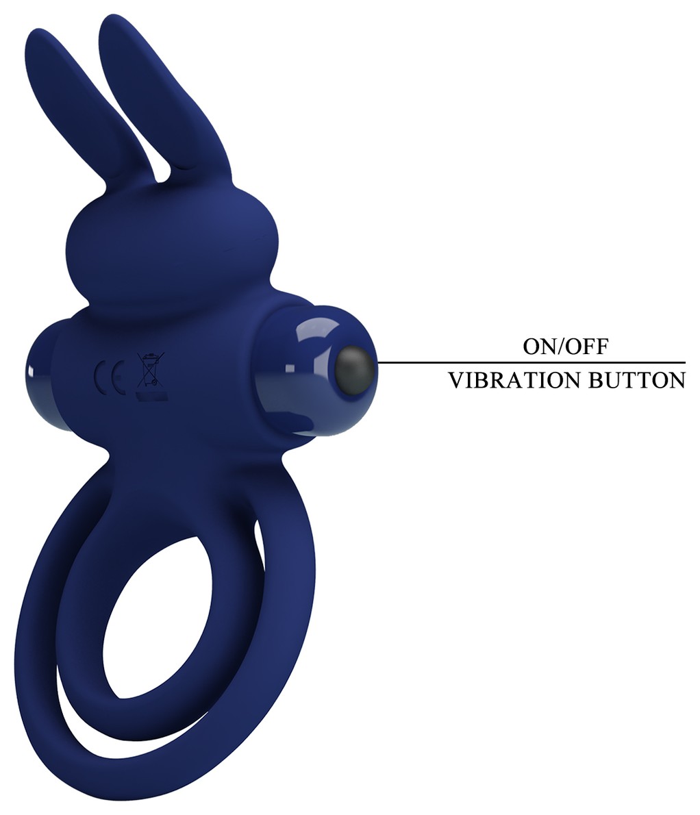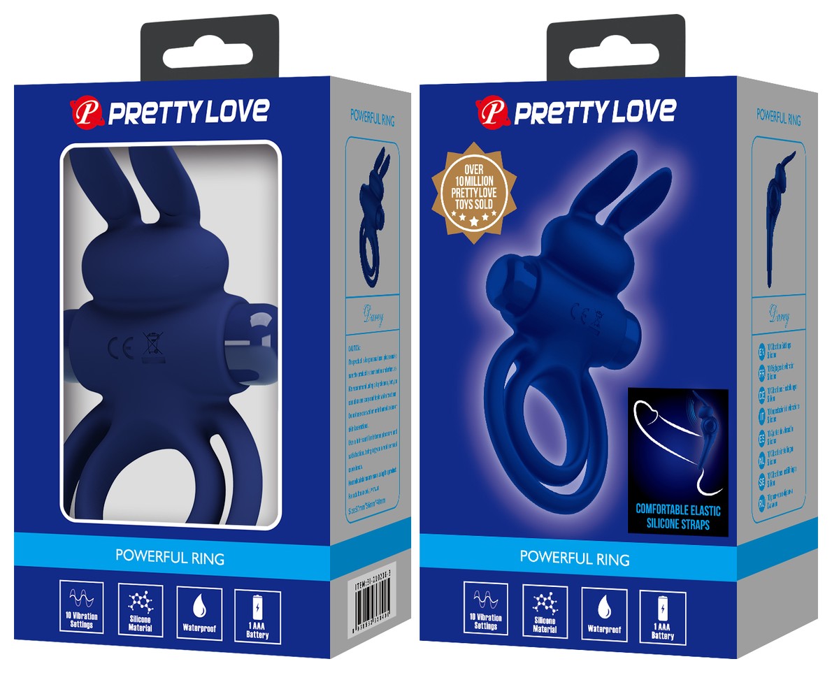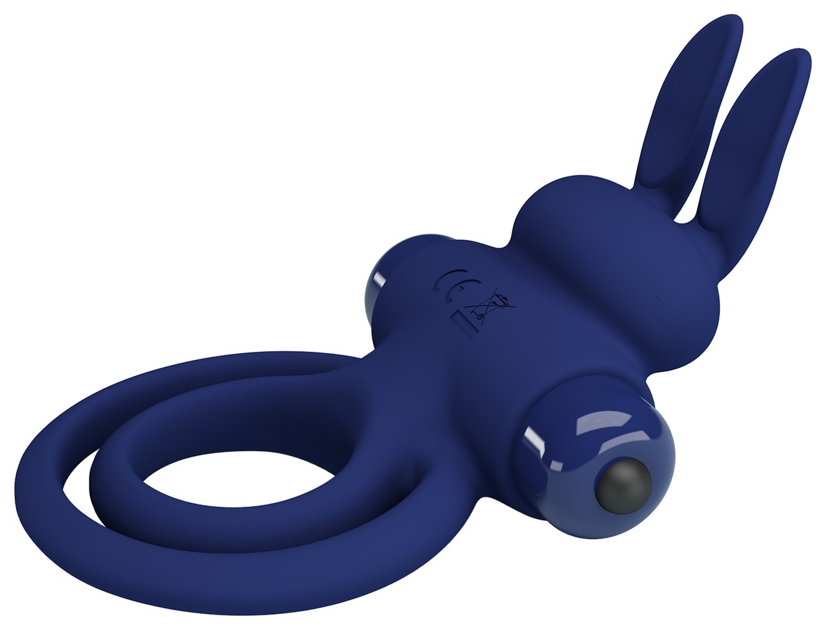 Синее эрекционное кольцо с вибростимуляцией клитора Powerful Ring