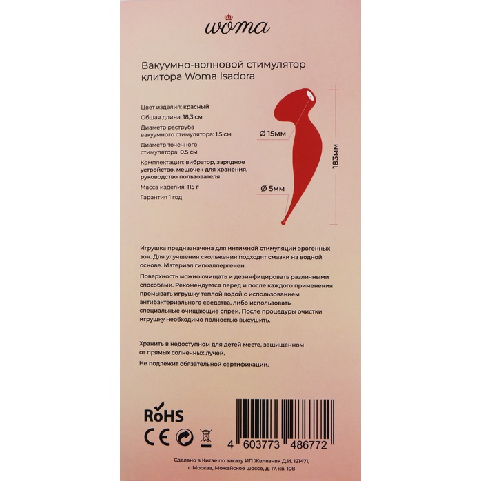 Красный вакуум-волновой стимулятор клитора Isadora с точечным вибратором
