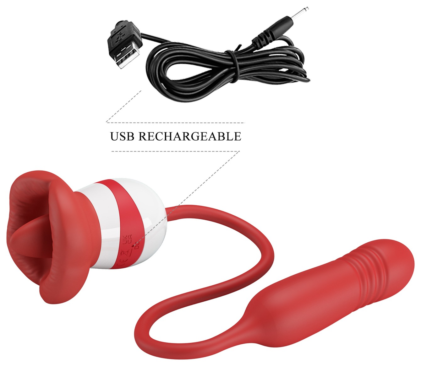 Красное продолговатое виброяицо Ashlynn с клиторальным стимулятором