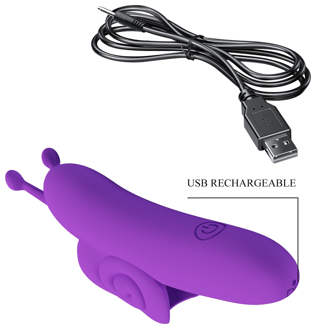 Этот эргономично изогнутый вибратор аккуратно надевается на палец благодаря эластичной силиконовой петле, так что вы можете направить усики-улитки туда, где вы или ваш партнер больше всего жаждете стимуляции. Всего одним нажатием кнопки ваш друг оживет в 10 режимах вибрации, так что вы сможете не только порадовать свое воображение каждым волнующим прикосновением! Кроме того, ваш вибратор snail finger станет идеальным спутником в путешествиях, он всегда будет готов к работе благодаря перезаряжаемой батарее.