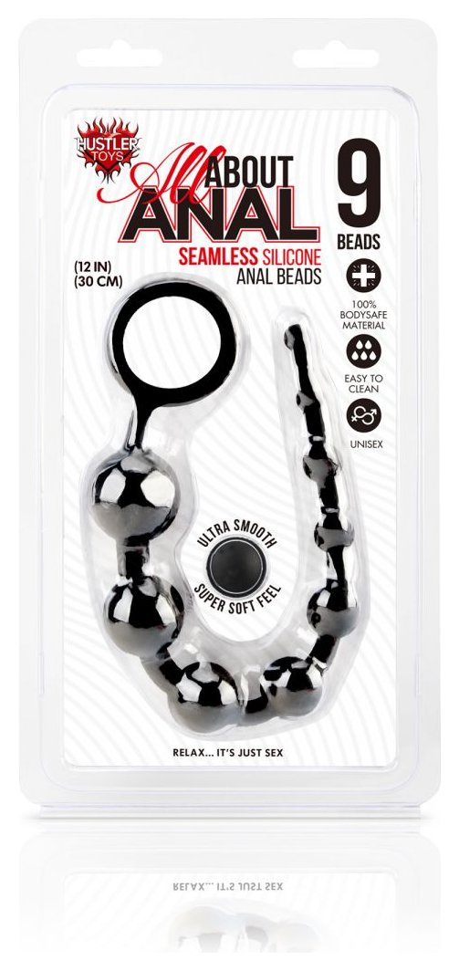 Самый лучший мягкий и упругий материал для анальных игрушек - силикон. HUSTLER превзошел сам себя - черные ультрабархатистые и нежные силиконовые бусы, состоящих из 9 шариков.