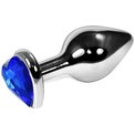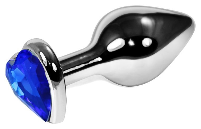 Гладкая серебристая втулка с синим кристаллом-сердечком - 7,6 см
