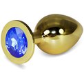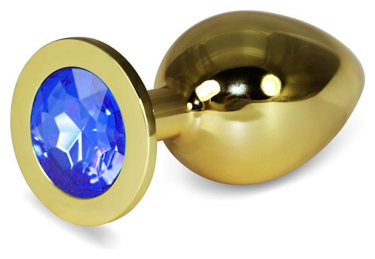 Большая гладкая золотистая втулка с синим кристаллом - 10,1 см