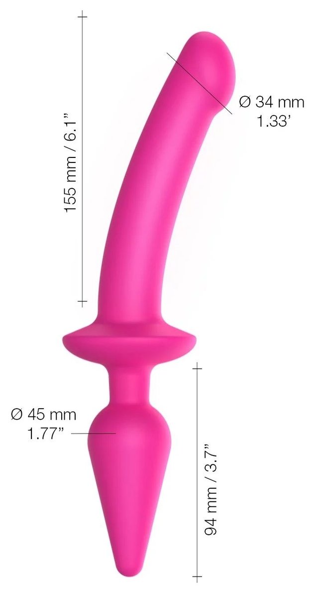 Коллекция двусторонних фаллоимитаторов Switch разработана для тех, кто любит экспериментировать и пробывать что-то необычное. Двухсторонняя секс-игрушка соединяет в себе фаллоимитатор и анальную пробку. Такой предмет подойдет как для сольных игр, так и для расширения границ в паре. Особенности: Водонепроницаемый Безопасный жидкий силикон Дизайн 2 в 1: фаллоимитатор и пробка Мягкий и гибкий Легко моется В коробке: мешочек для хранения руководство пользователя Используйте со смазкой на водной основе. Длина вагинальной части - 15,5 см, диаметр - 3,4 см. Длина анальной части - 9,4 см, диаметр - 4,5 см.