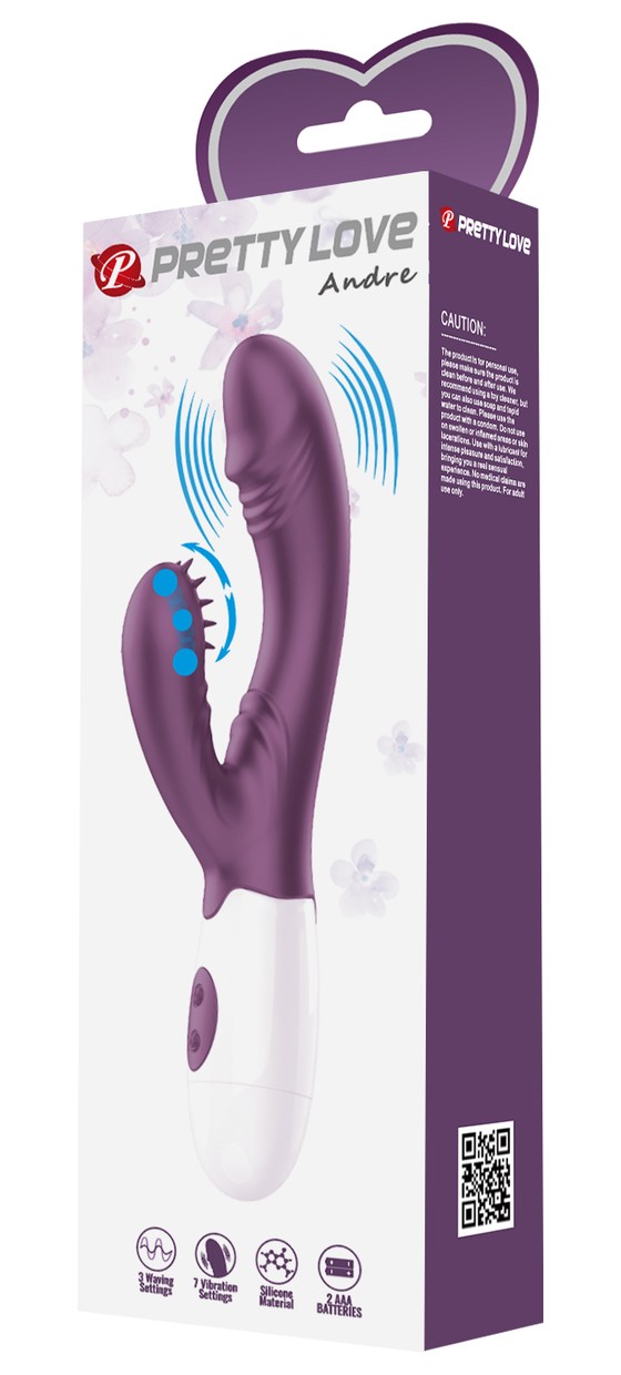 Вибратор Pretty Love Andre, изготовленный из силикона, имеет 7 режимов вибрации и 3 режима волнообразного движения. Изогнутый центральный ствол обеспечивает глубокое воздействие на внутренние зоны удовольствия, а наружная стимуляция с помощью мягких силиконовых лепестков предлагает дополнительный массаж для клитора. Рабочая длина - 10 см.