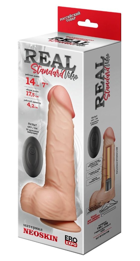 Телесный вибратор-реалистик REAL Standard с пультом ДУ - 17,5 см