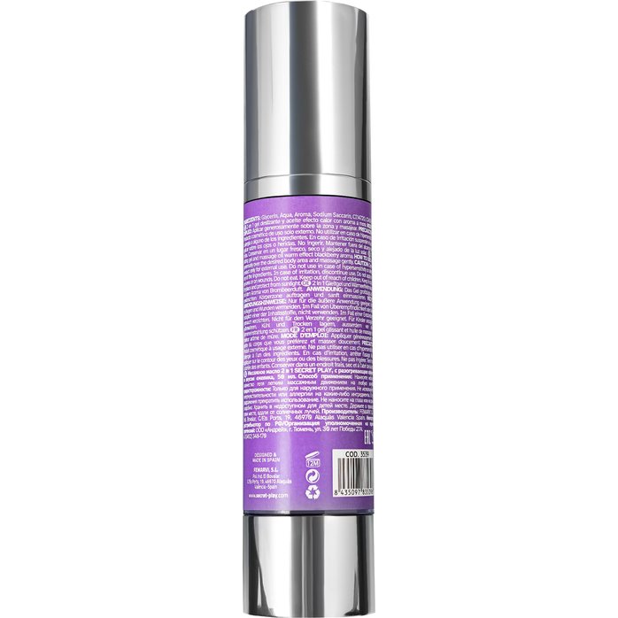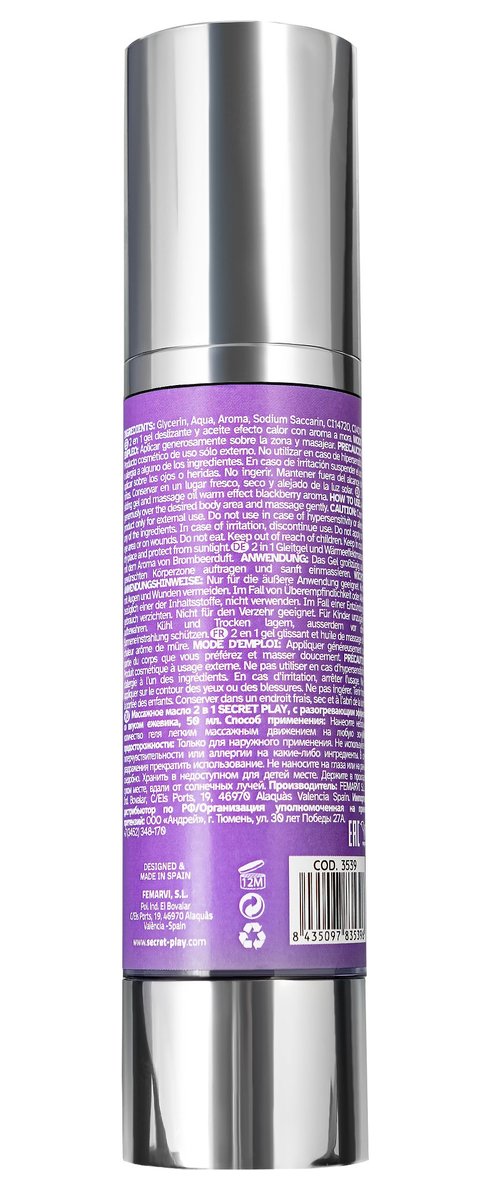 Blackberry Hot Effect — массажное масло 2 в 1 от Secret Play с разогревающим эффектом и насыщенным вкусом ежевики, созданное для тех, кто хочет привнести нотку сладкой чувственности в свои интимные моменты. Это универсальное масло идеально подходит для прелюдий, оральных ласк и чувственного массажа, даря незабываемое тепло и мягкость в каждом прикосновении. Его сладкий, ягодный аромат ежевики окутывает воздух, создавая атмосферу страсти и расслабления, а разогревающий эффект усиливает чувственные ощущения, делая ласки более яркими и глубокими. Масло легко скользит по коже, обеспечивая комфорт и наслаждение, превращая любой момент близости в настоящее удовольствие. Blackberry Hot Effect открывает перед вами мир наслаждений — нанесите его на эрогенные зоны, такие как шея, плечи или соски, и ощутите, как тепло пробуждает чувственность и усиливает удовольствие. Благодаря универсальной глицериновой основе, масло можно использовать как для чувственного массажа, так и в качестве лубриканта для незабываемых прелюдий. Погрузитесь в мир сладкой чувственности с Blackberry Hot Effect и превратите каждый поцелуй и прикосновение в незабываемое удовольствие.