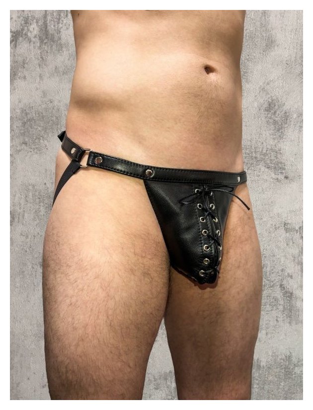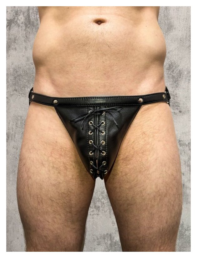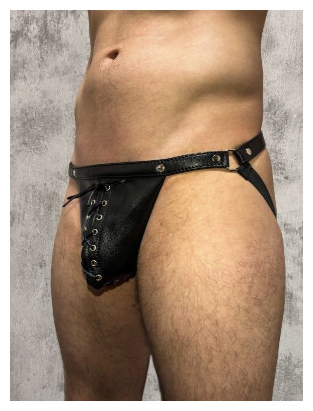 Кожаные мужские трусы-джоки со шнуровкой
