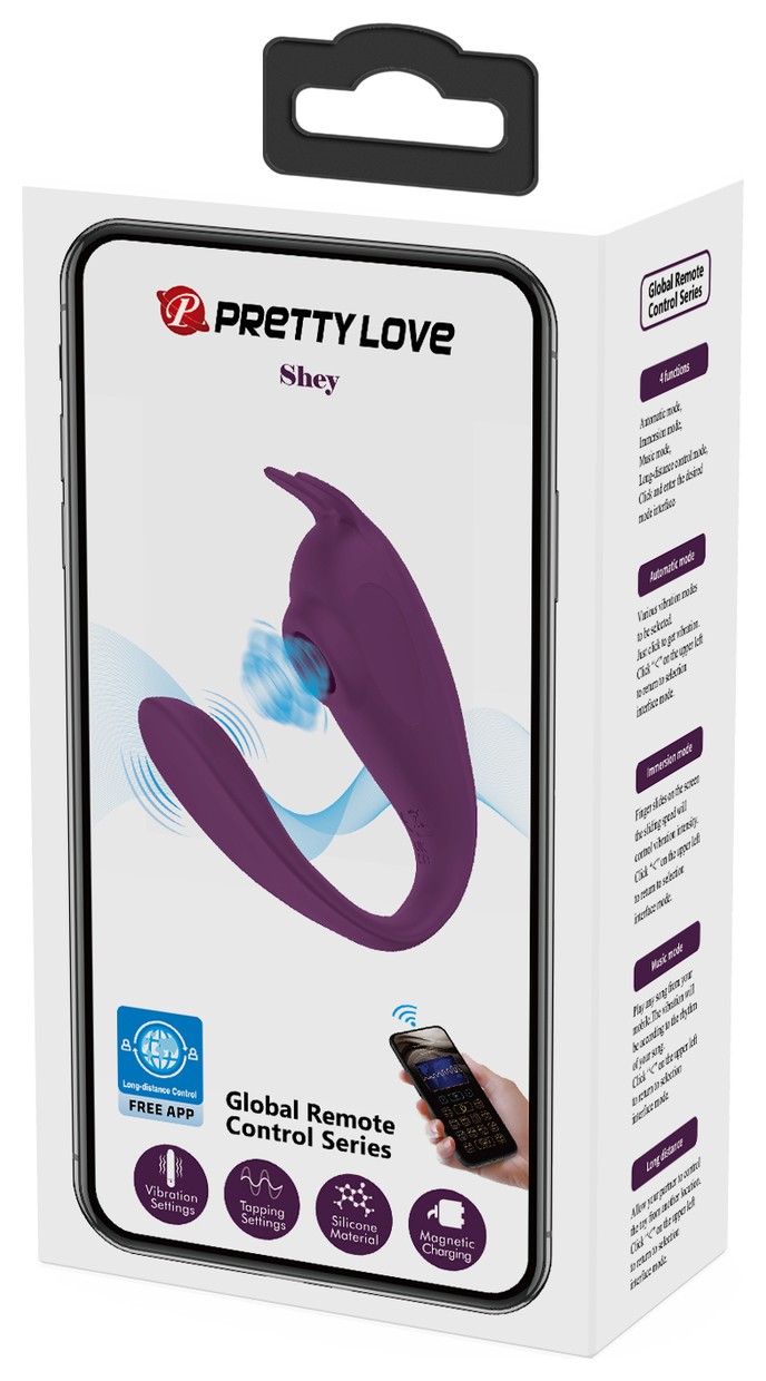 Shey — это эргономичный вибратор в форме буквы C, созданный для пар. Он обеспечивает двойную стимуляцию: внешняя часть стимулирует клитор с помощью 10 режимов постукивания, а внутренняя часть воздействует на точку G с помощью 10 режимов вибрации. Устройство водонепроницаемо и поддерживает управление через мобильное приложение, включая управление на дальнем расстоянии. Вибратор изготовлен из силикона и заряжается через магнитный USB.