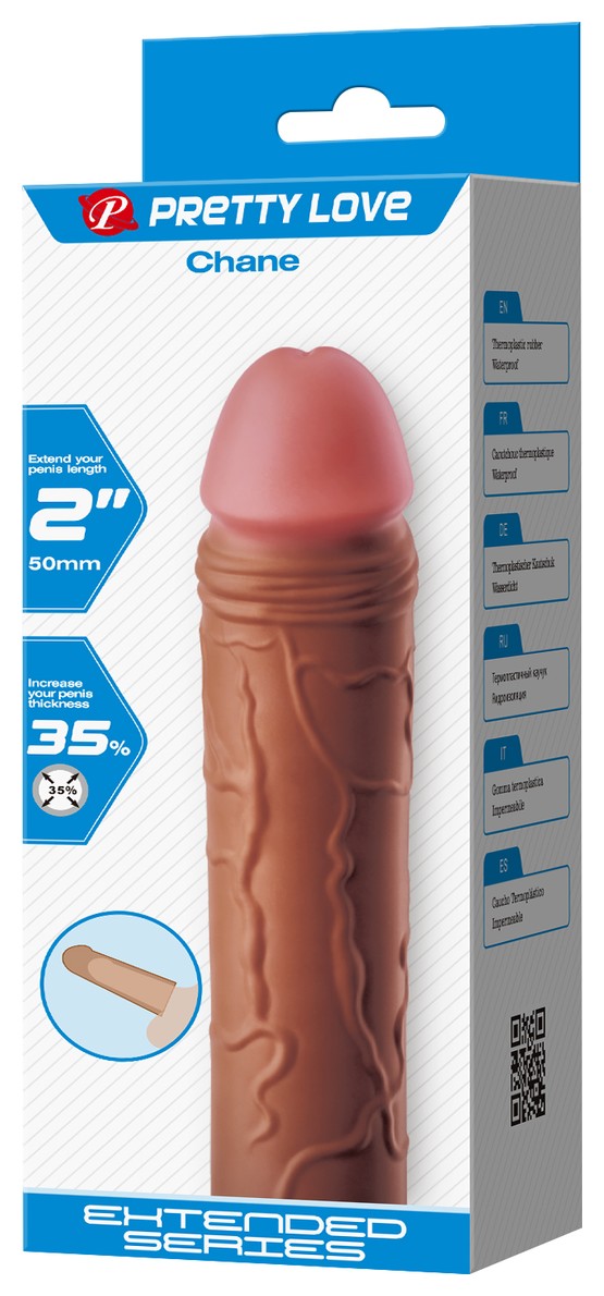 Эта насадка на пенис выполнена из ультрареалистичного материала, который придаёт естественные ощущения. Она увеличивает длину на 5 см и обхват на 35%. Внешняя поверхность текстурирована венами, а головка расширена для создания максимально натуральных ощущений. Гладкий внутренний канал плотно прилегает к пенису, обеспечивая усиленную стимуляцию. Длина полости - 13 см, диаметр - 2,3 см.