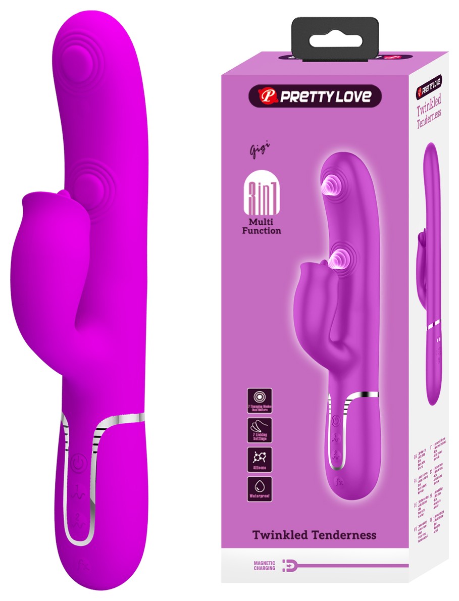 Лиловый вибратор-кролик с пульсацией Gigi - 22,8 см