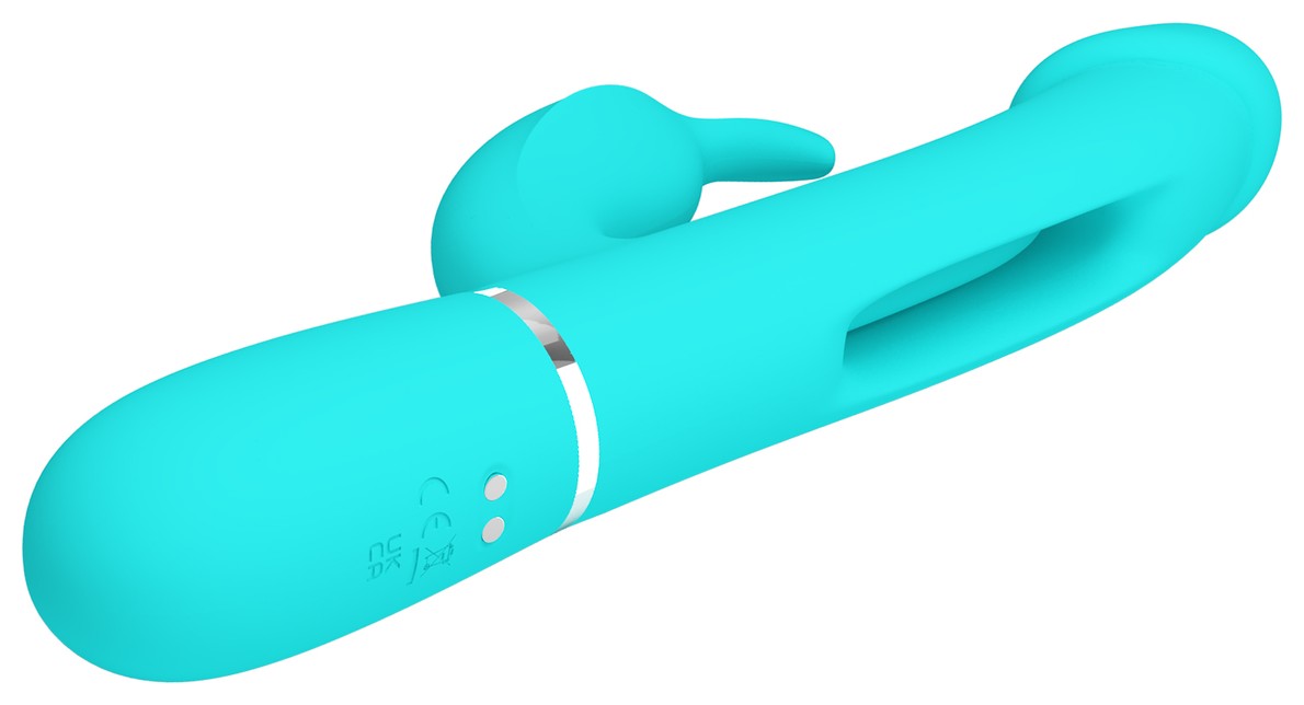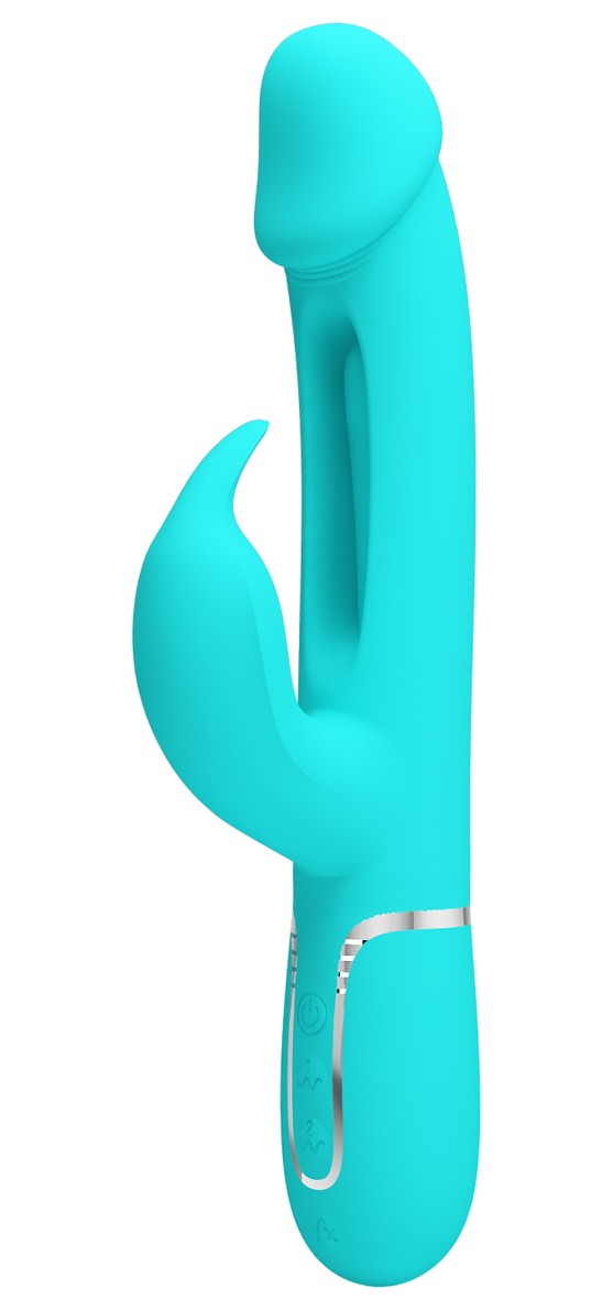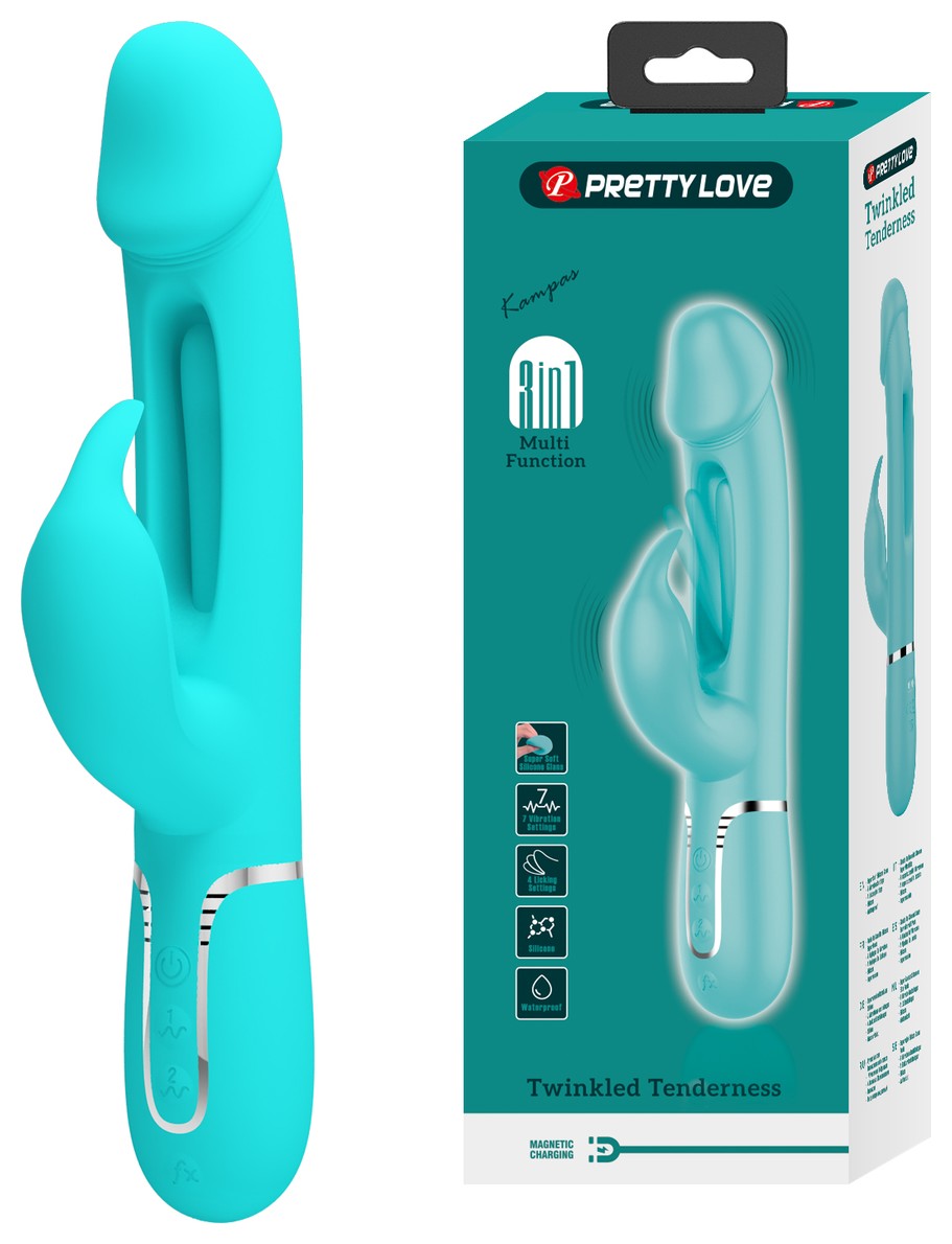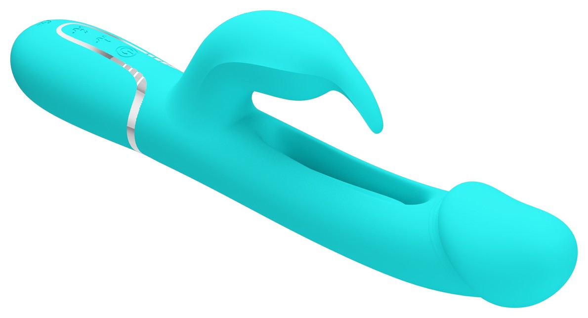 Аквамариновый вибратор-кролик с функцией фингеринга Kampas - 23,2 см