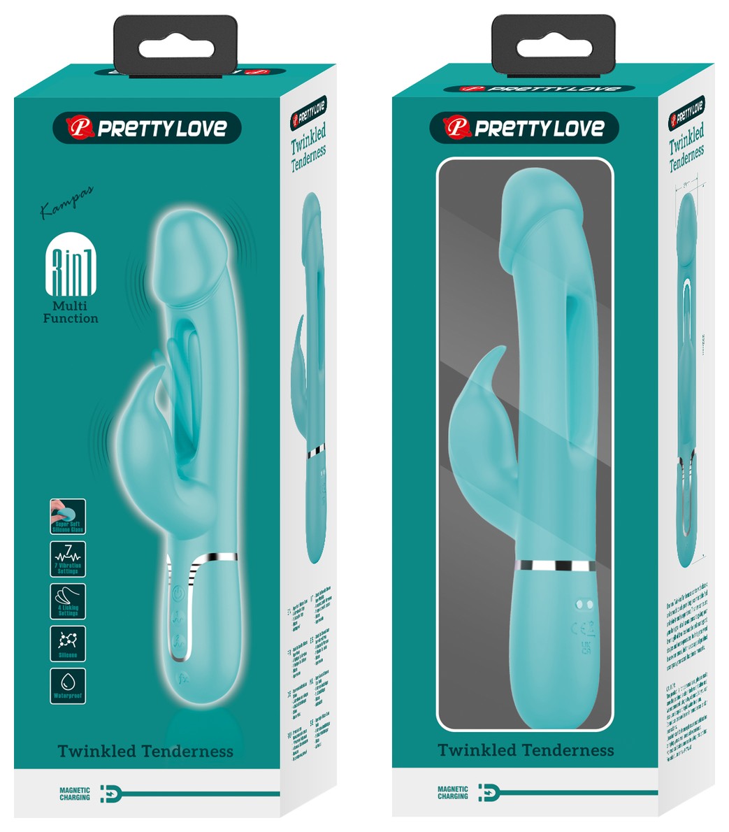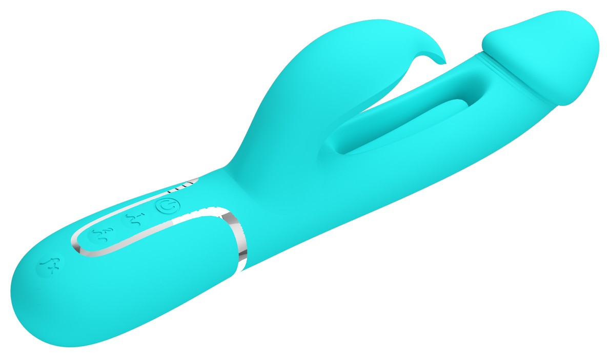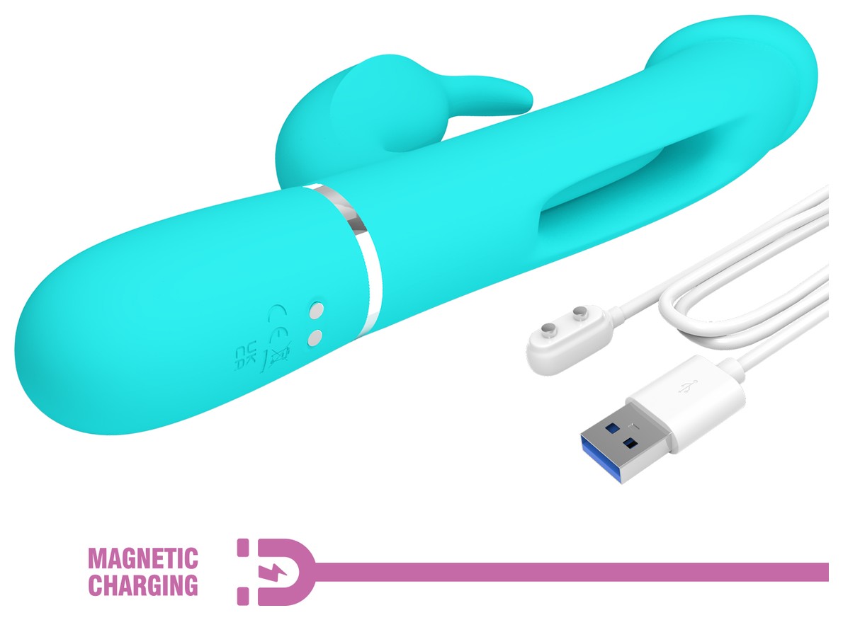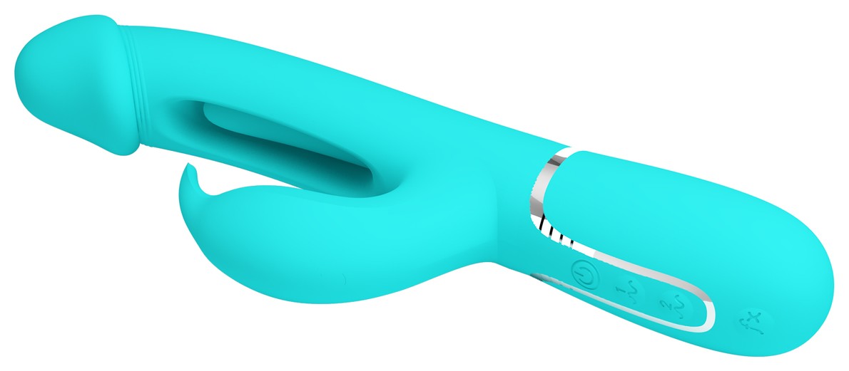 Аквамариновый вибратор-кролик с функцией фингеринга Kampas - 23,2 см