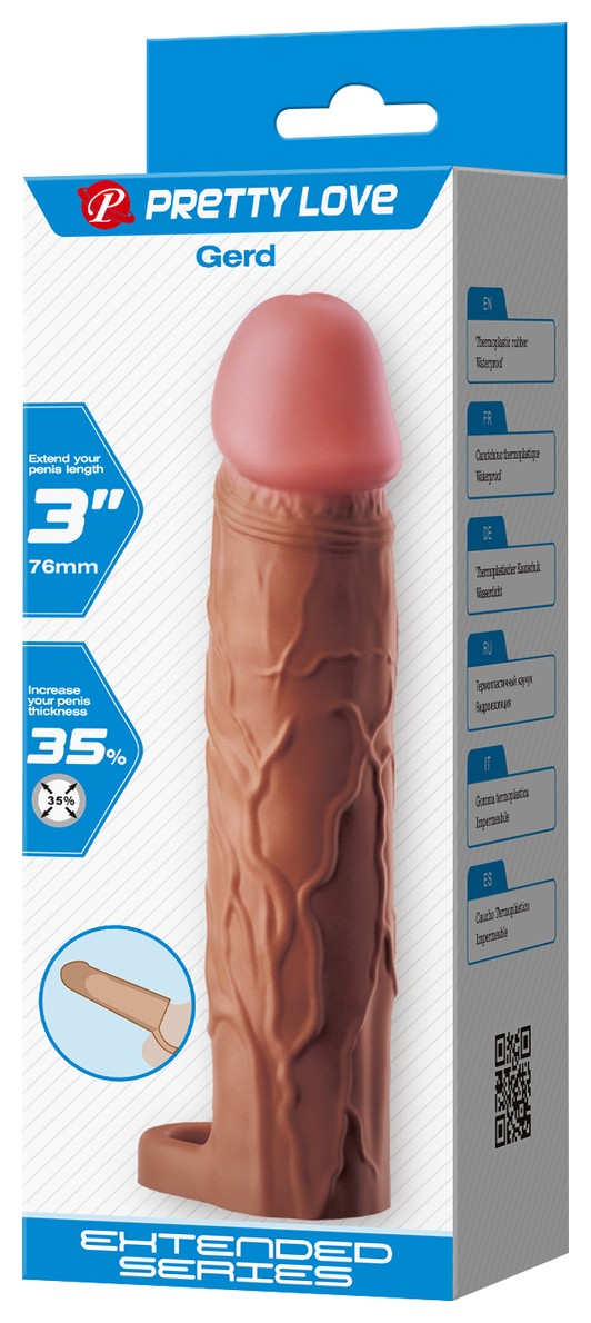 Эта насадка на пенис легко надевается и добавляет пенису длину и объём. С ремешком для яичек, она помогает продлить эякуляцию и дарит вам и вашему партнёру более яркие ощущения. Длина полости - 11,9 см, диаметр - 2,3 см.