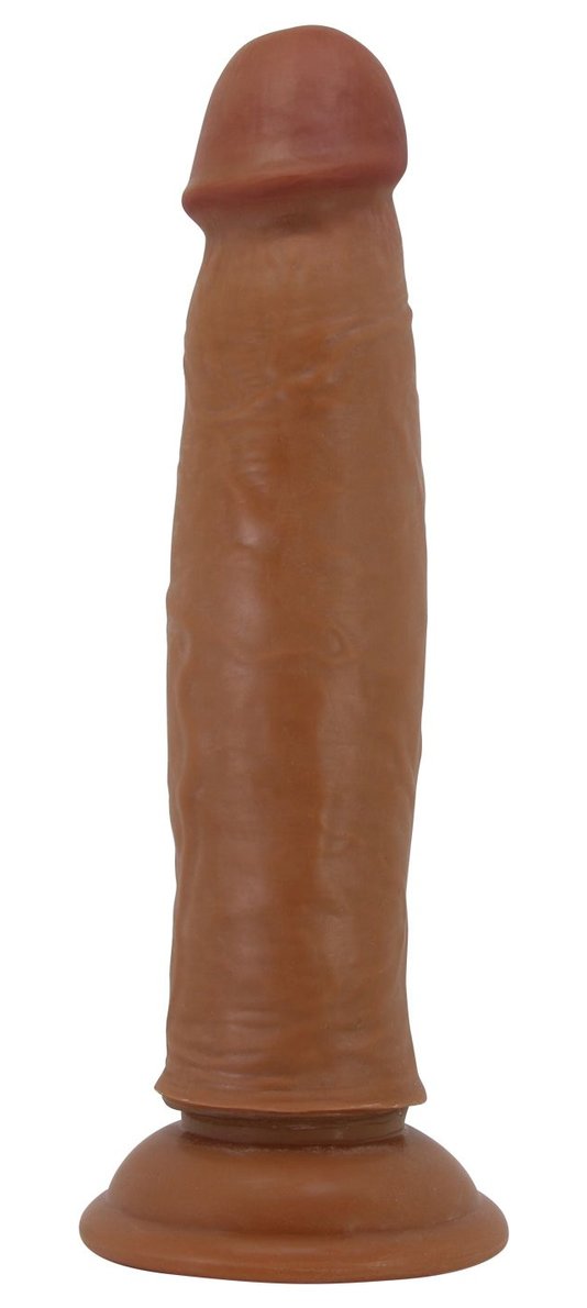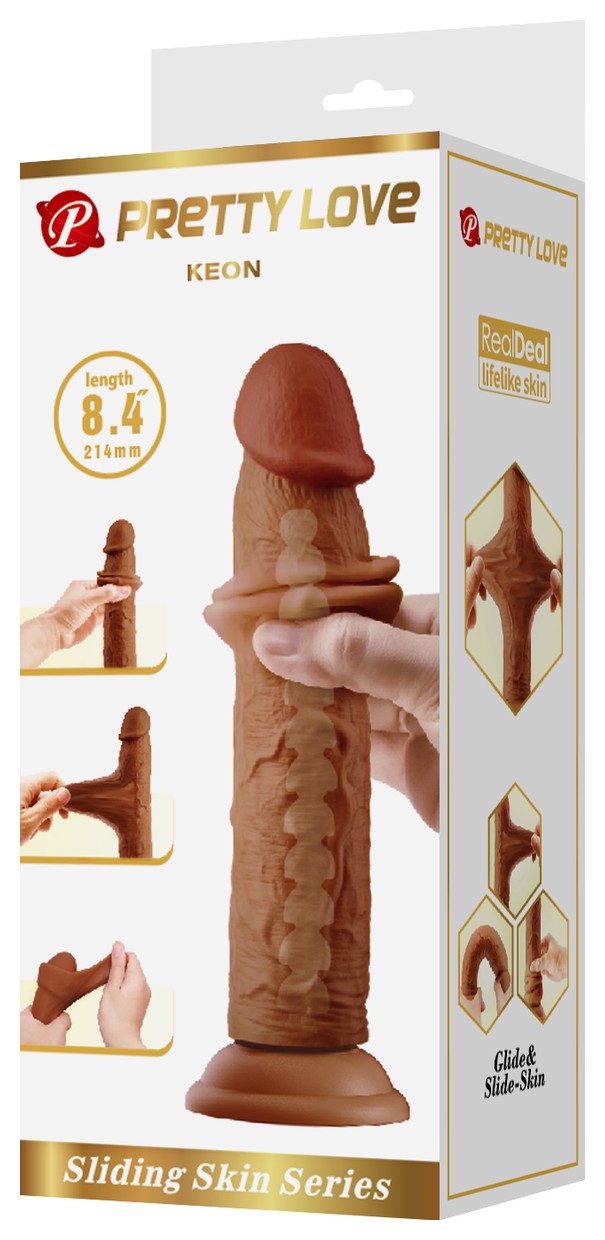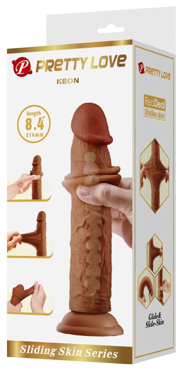 Коричневый фаллоимитатор с подвижной кожей Keon - 21,4 см