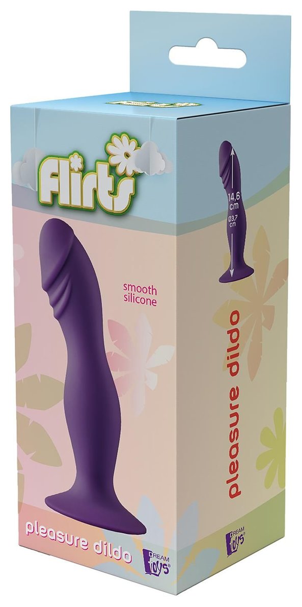 Flirts — это коллекция игрушек Dream Toys, которая отличается яркими цветами и упаковкой, напоминающей о весне, голубом небе, солнечных днях и цветах. Этот дилдо изготовлен из гладкого фиолетового силикона и имеет кончик в форме головки. Благодаря изогнутой форме он легко достигает точки P у мужчин. Дилдо оснащен присоской для использования без помощи рук.