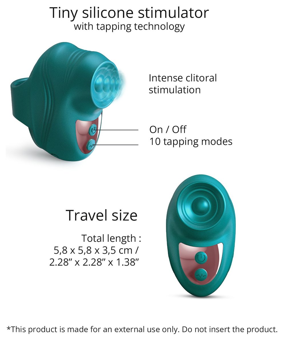 Эта очаровательная игрушка станет вашим личным волшебным помощником. Просто наденьте её на указательный палец, и вы сможете наслаждаться её магией в любом месте. Не дайте себя обмануть её милым дизайном — Kisscool подарит вам минуты интенсивного наслаждения благодаря инновационной технологии постукивания. 10 режимов постукивания. Kisscool — это радость, веселье и любовь, доступные вам 24/7, 365 дней в году. Она создана, чтобы дарить вам удовольствие без перерыва. Забудьте о лишних заботах и возьмите Kisscool с собой в отпуск! Она легко поместится в вашу косметичку, сумочку или даже клатч. Kisscool — генератор хорошего настроения. Ваш партнер тоже может захотеть присоединиться к веселью. Чем больше, тем веселее! В одиночку — это круто, вдвоем — ещё лучше!