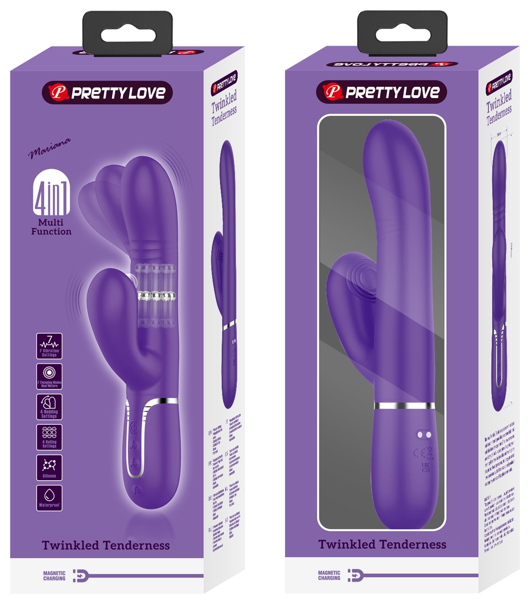 Силиконовый вибратор-кролик Mariana. Этот кролик имеет 7 режимов вибрации, 7 режимов постукивания, 4 настройки сгибания, 4 режима вращения бусин. Перезаряжаемый от USB. Рабочая длина - 12 см.