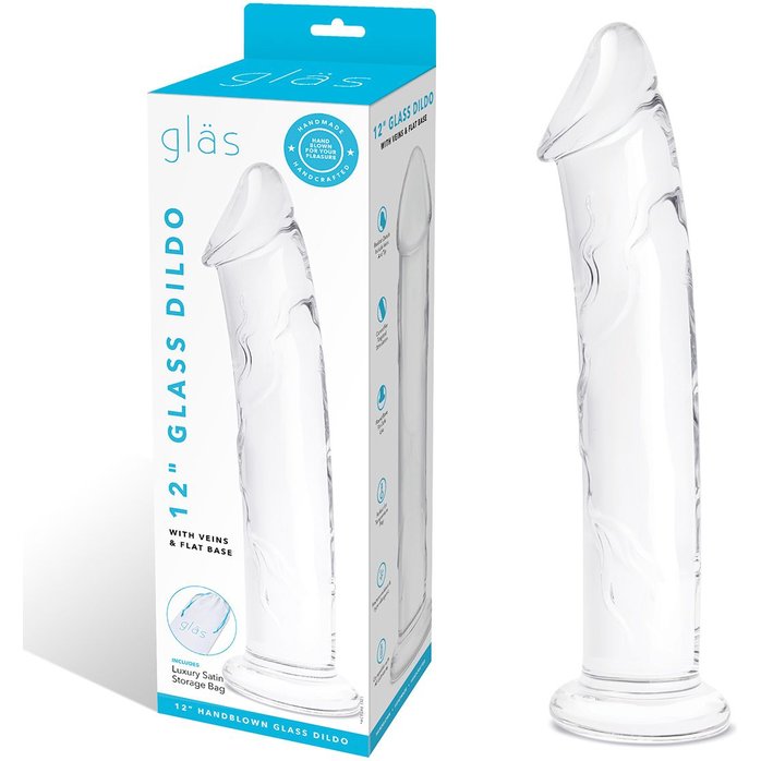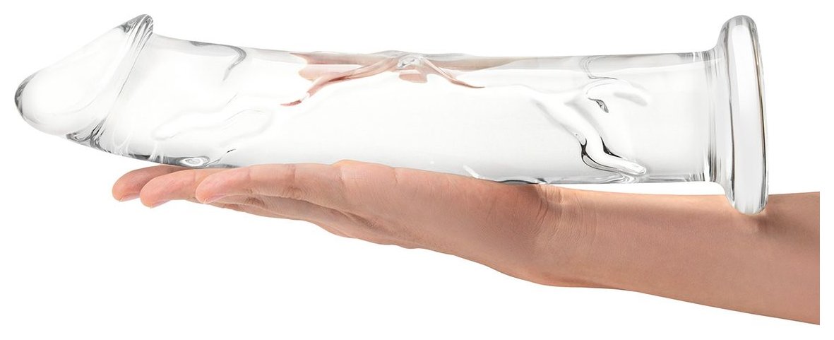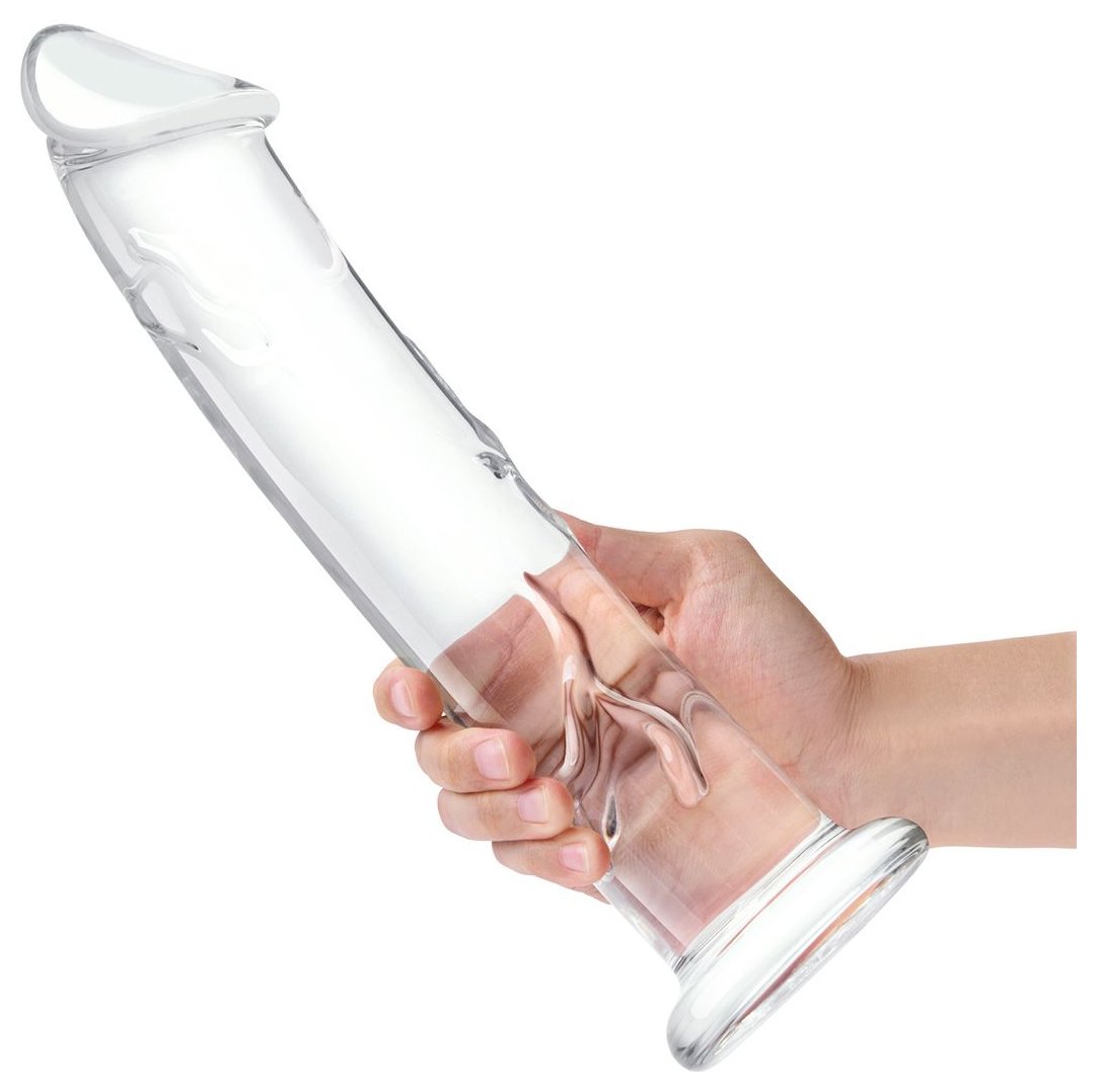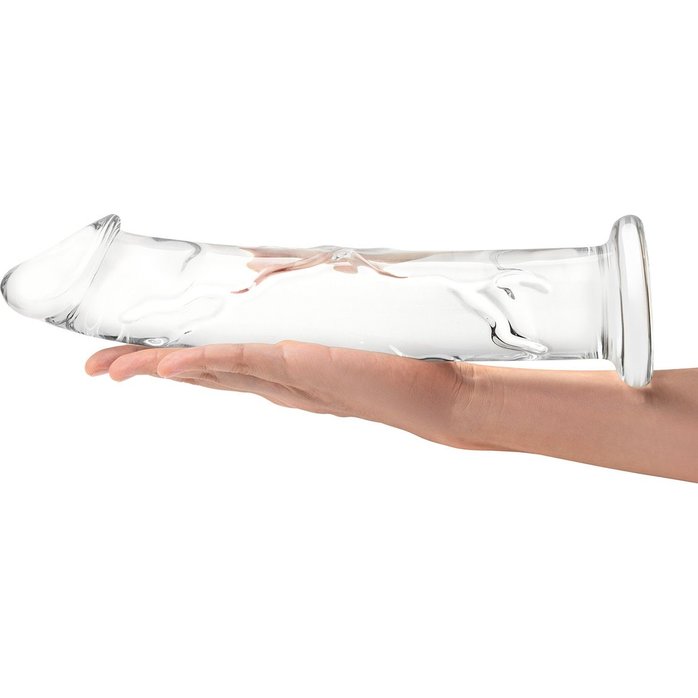 Большой стеклянный стимулятор 12’’ Glass Dildo With Veins Flat Base - 28 см