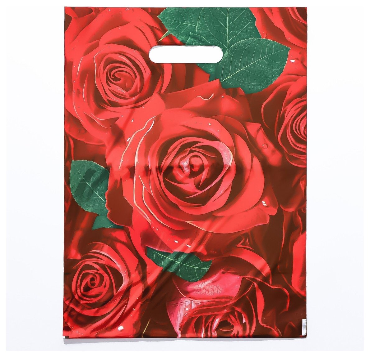 Пакет с цветочным принтом и вырубной ручкой (30х40 см)